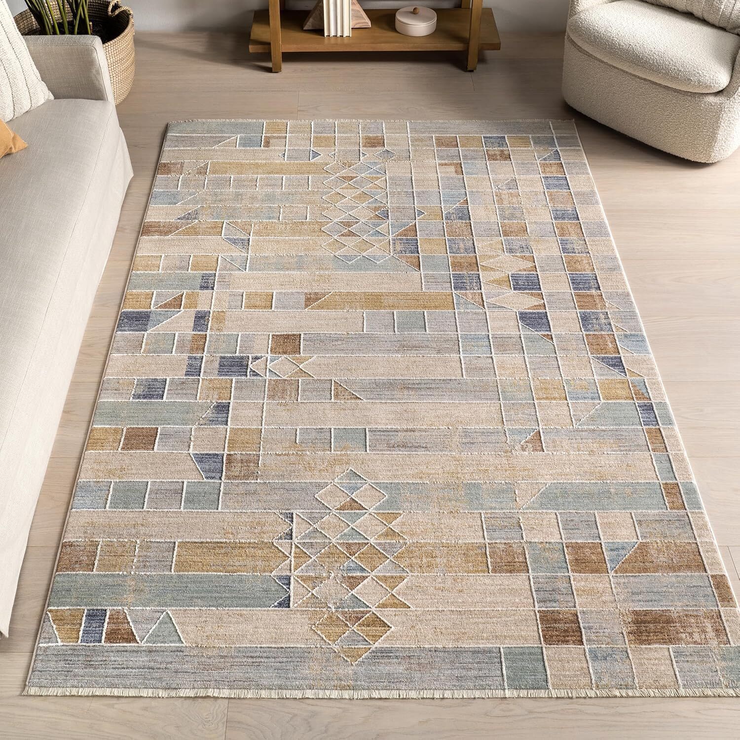 Стильный и универсальный дизайн: Этот геометрический коврик обладает вневременной, завораживающей эстетикой. Его геометрический узор и уникальные принты привносят изюминку в любую комнату, обеспечивая долговечный стиль вашей гостиной, спальни. для обеденной зоны.