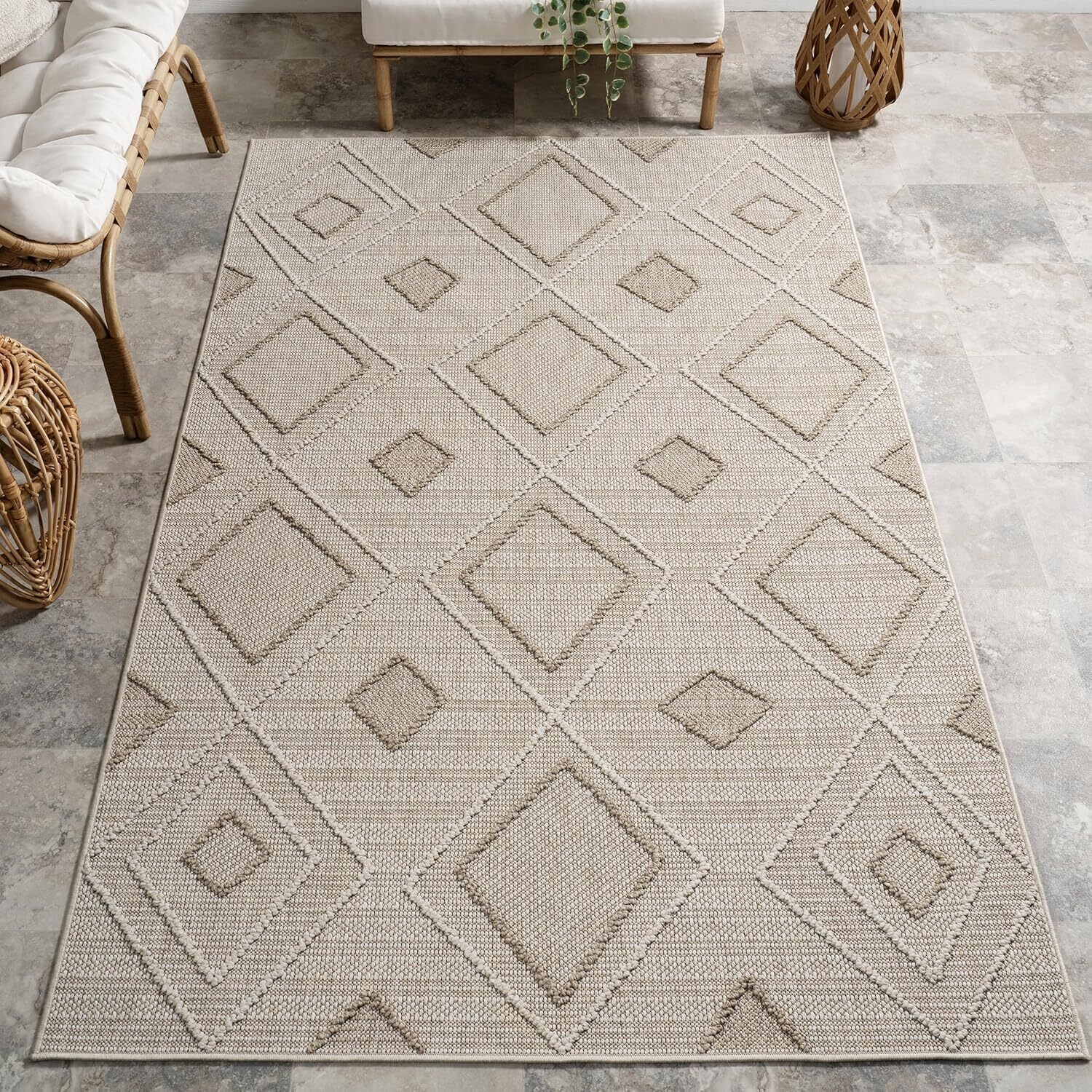 Стойкий стильный дизайн: Этот геометрический ковер для помещений и улицы обладает завораживающей эстетикой. Его классические узоры и мотивы привносят нотку изысканности в любую комнату, обеспечивая неподвластный времени стиль для вашей гостиной, патио или террасы.