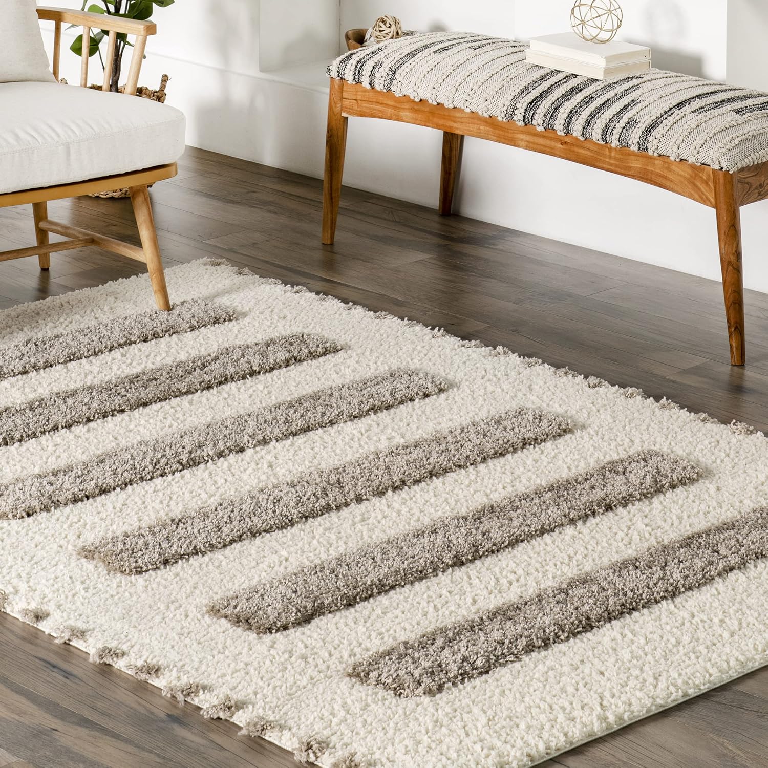 Ковер nuLOOM, 122 x 183 см, Jasmina High/Low Striped Shag, Ivory