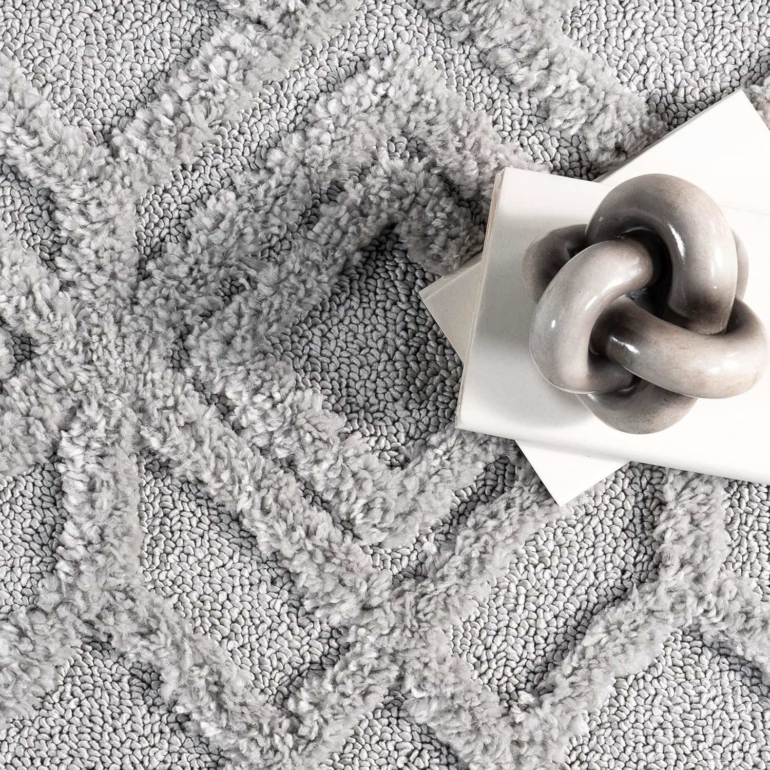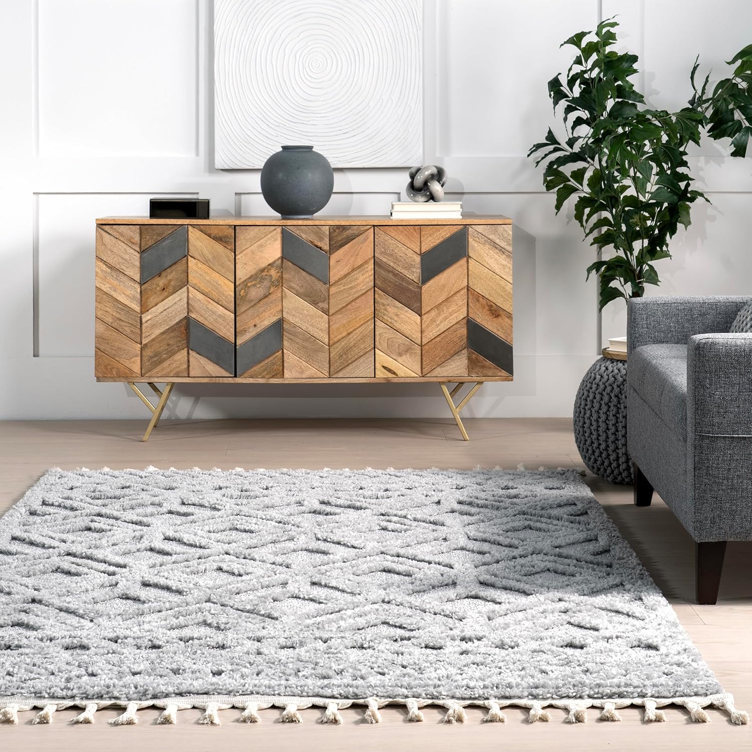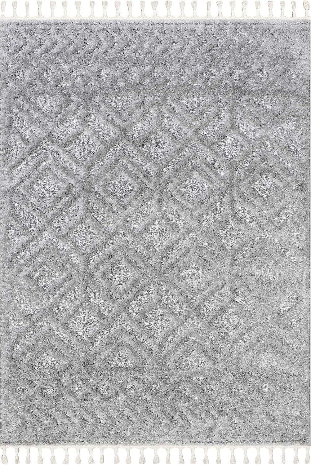 Ковер nuLOOM, 122 x 183 см, Akia Lattice High/Low с кистями, Light Grey
