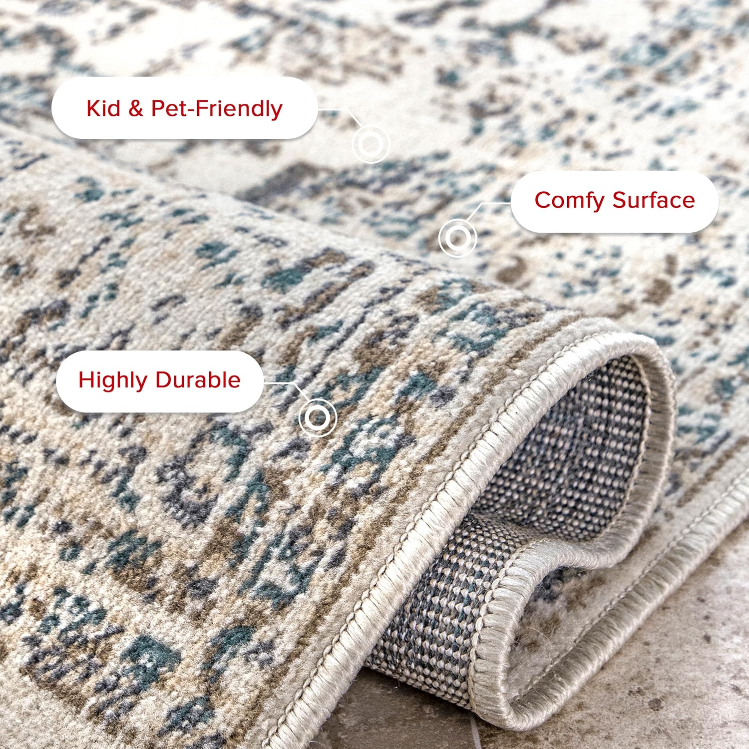 Ковер, подходящий для детей и домашних животных: беспокоитесь о пролитых жидкостях или беспорядке? Благодаря синтетическому волокну этот коврик разработан специально для активного дома, где есть дети и домашние животные. даря вам душевное спокойствие, позволяя расслабиться и наслаждаться вашим новым ковром.
