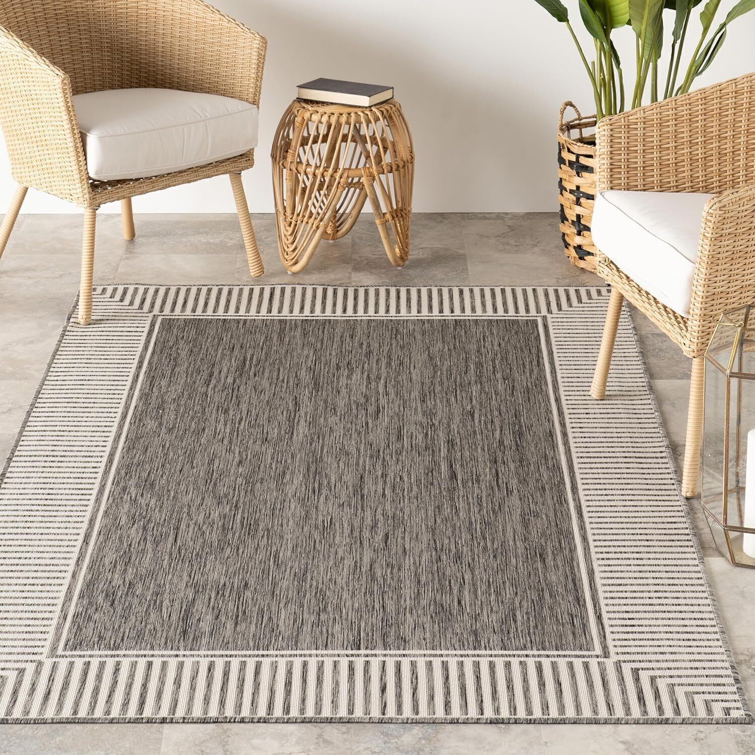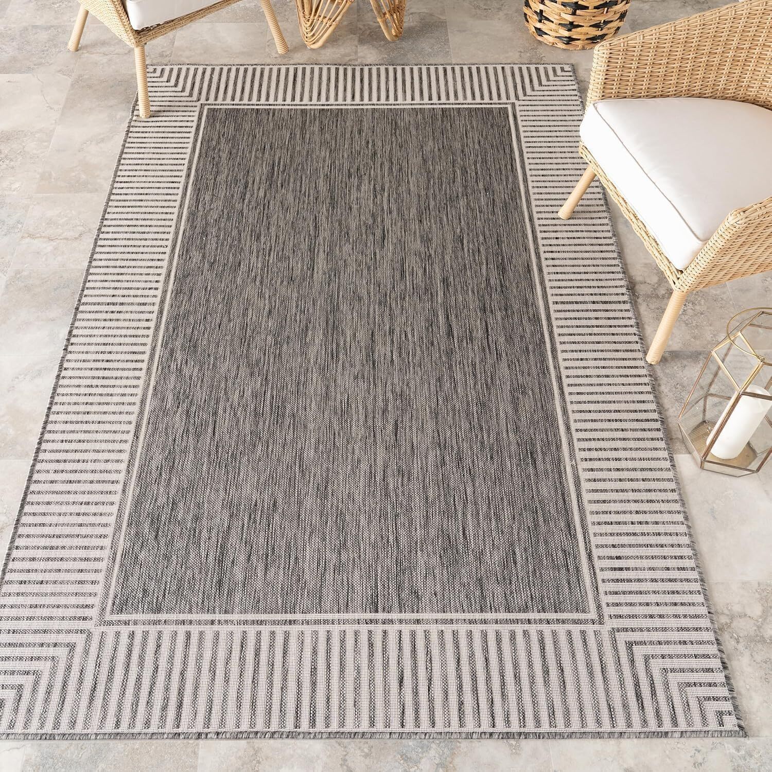 Стильный и универсальный ковер с классическим дизайном и полосатой каймой. Изготовлены из высококачественных материалов с пятном чехла, идеально подходящих для активного использования как внутри дома, так и в открытых пространствах.