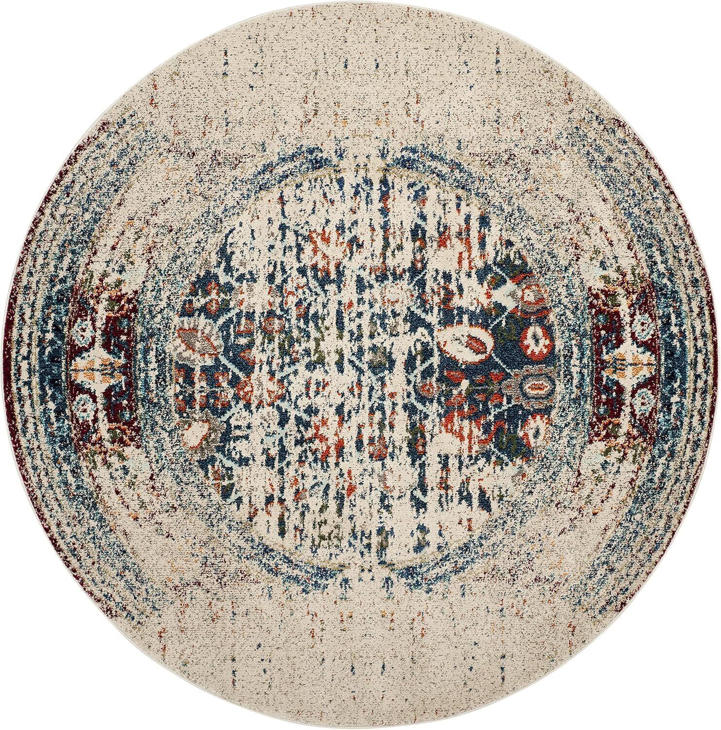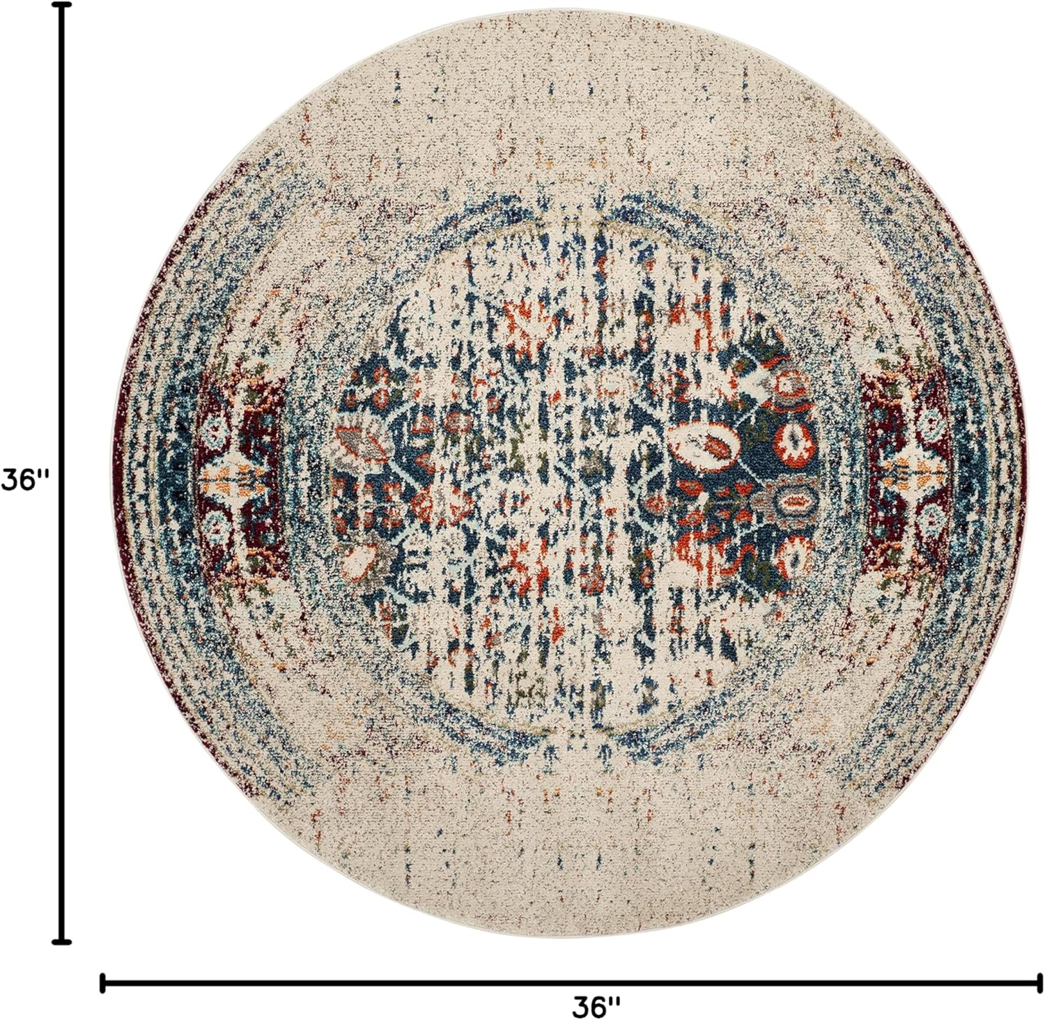 Ковер SAFAVIEH, 92 x 92 см, коллекции Monaco, цвета ivory и blue, богемный абстрактный дизайн с эффектом потертости, не линяет, прост в уходе, идеален для помещений с высокой проходимостью в гостиной, спальне (MNC208M)