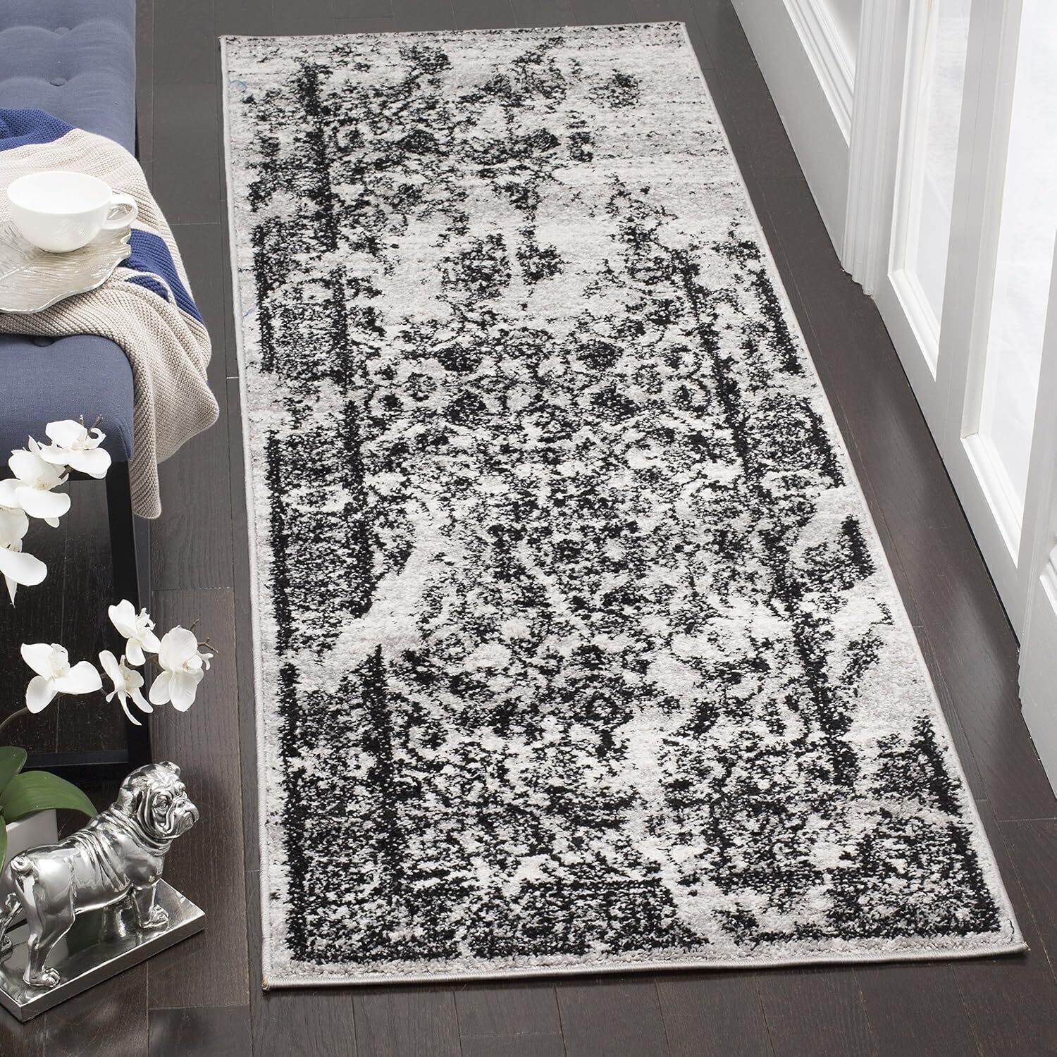 Ковер SAFAVIEH, 77 x 671 см, Adirondack Collection, Silver & Black, Oriental Distressed Design, Non-Shedding & Easy Care, идеально подходит для помещений с высокой проходимостью в гостиной, спальне (ADR101A)