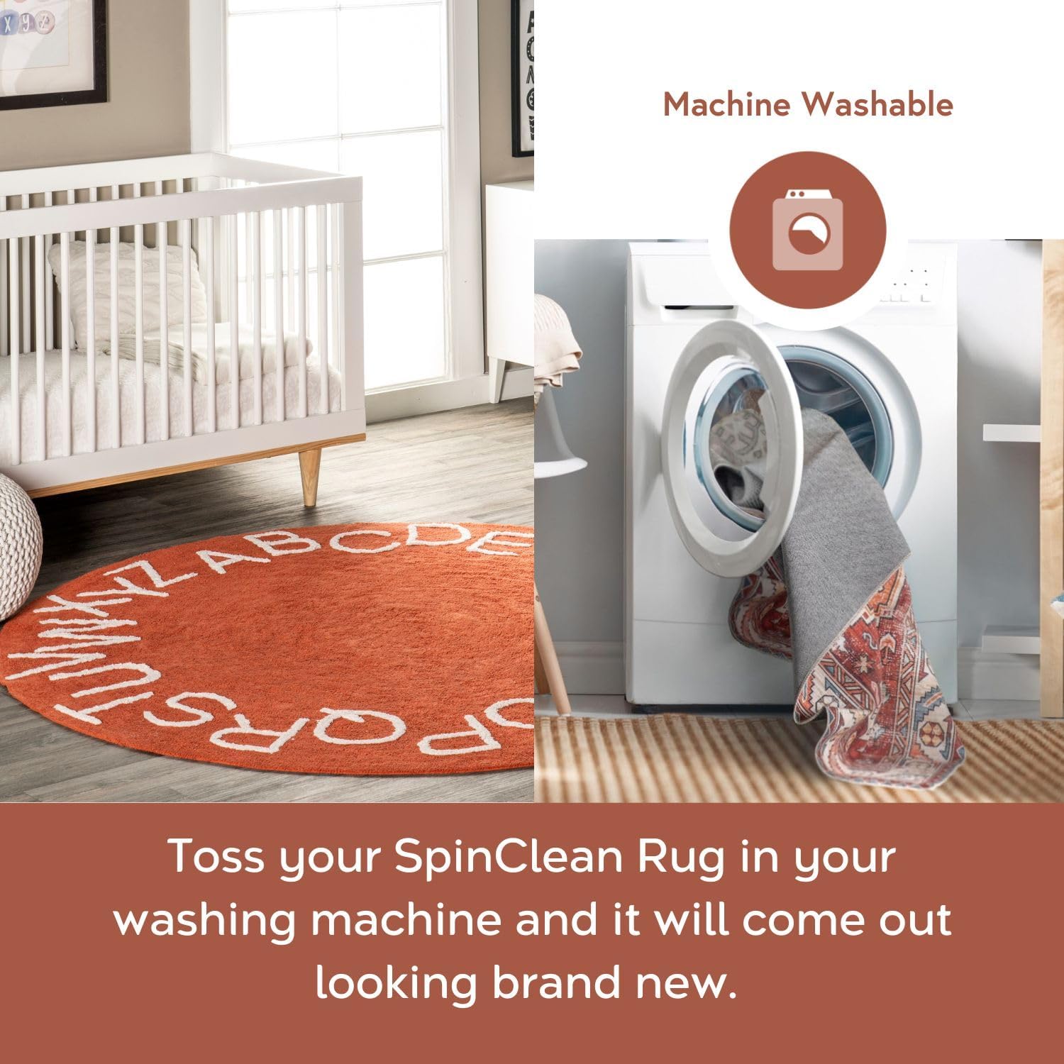 Детский моющийся ковер 122 x 122 см nuLOOM Round Alphabet, круглый, Rust