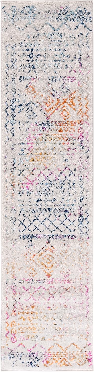 Ковер-дорожка SAFAVIEH, 61 x 275 см, Tulum Collection, Ivory & Fuchsia, марокканский бохо дистресс дизайн, не линяет и прост в уходе, идеален для помещений с высокой проходимостью в гостиной, спальне (TUL268E)