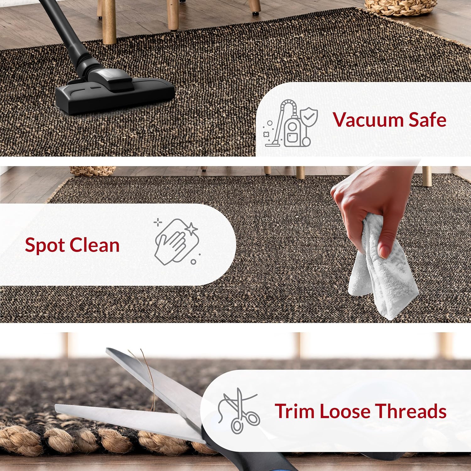 Джутовый ковер nuLOOM Rigo Farmhouse — это воплощение природного уюта и прочности. Практичный и долговечный, он станет нейтральной основой для любой гостиной или спальни, требуя лишь минимального сухого ухода.
