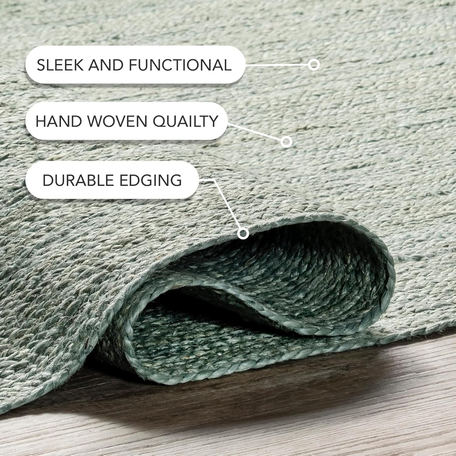 Стильный напольный ковер из 100% натурального джута, сочетающий экологичность и современный дизайн. Зеленый цвет придает интерьеру свежесть и природную гармонию, идеально вписываясь в современные стили бохо, сканди или эко-лофт.