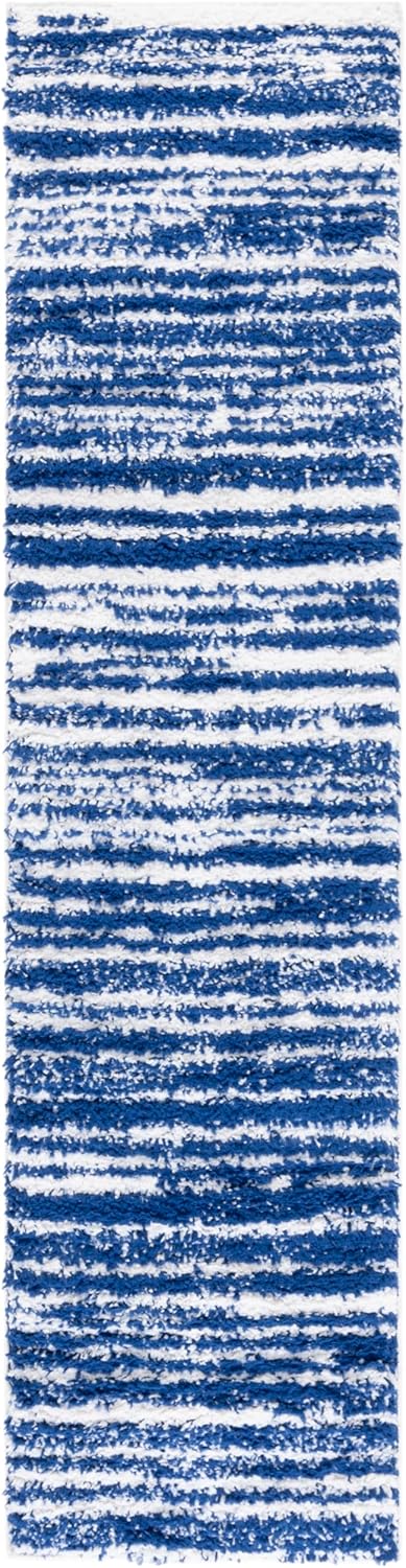 Ковер SAFAVIEH, 67 x 244 см, Rumi Shag Collection, Navy/Ivory, геометрический рисунок, идеален для помещений с высокой проходимостью в гостиной, спальне, столовой (RMS110N)