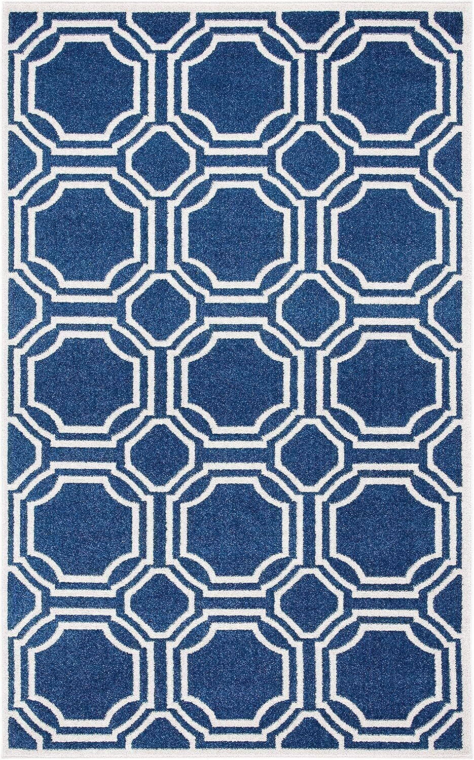 Ковер SAFAVIEH, 161 x 244 см, коллекции Amherst, Navy & Ivory, геометрический рисунок, не линяет и прост в уходе, идеален для помещений с высокой проходимостью в гостиной, спальне (AMT411P)