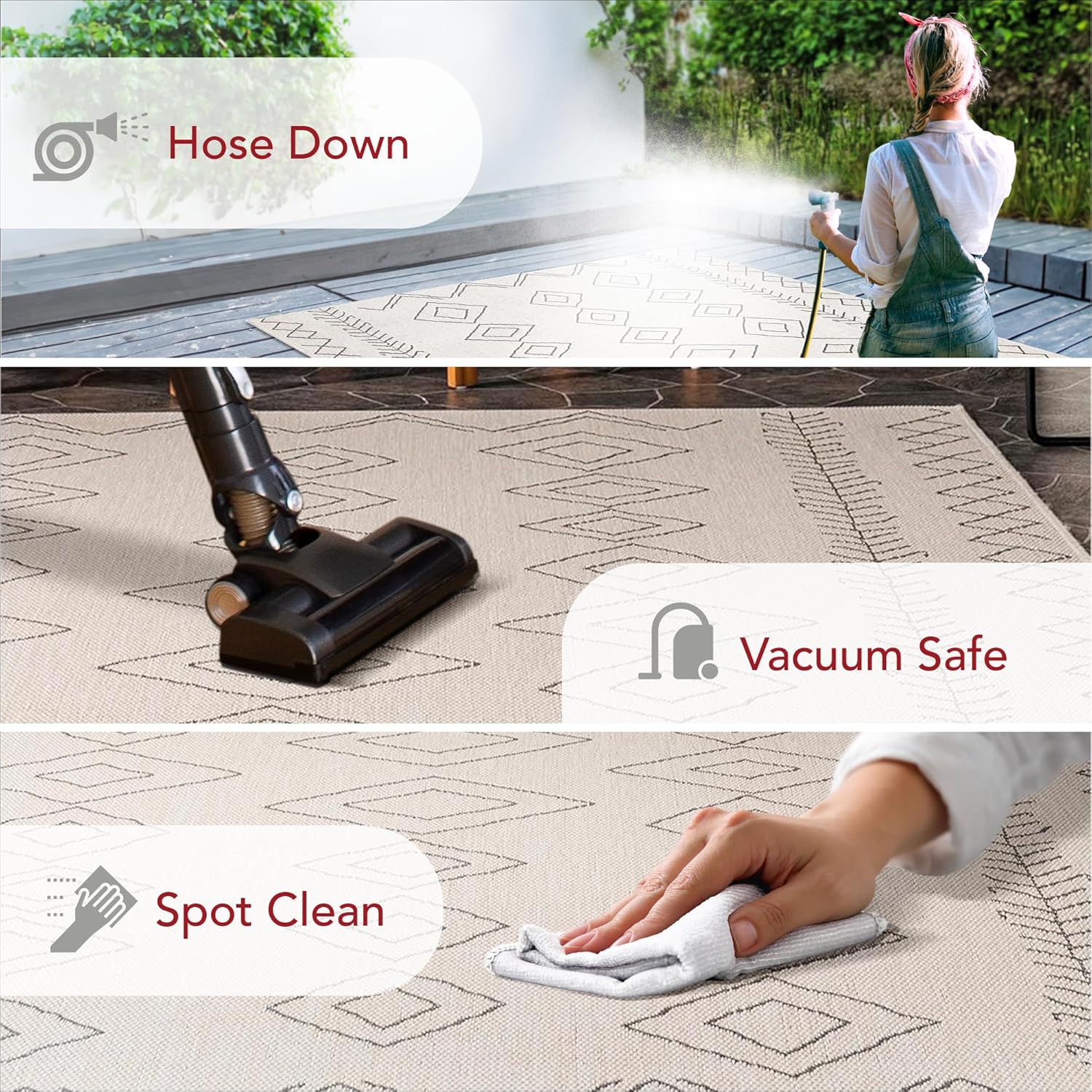 Легко чистить и ухаживать: регулярно пылесосьте и обрабатывайте небольшие пятна средством для чистки ковров