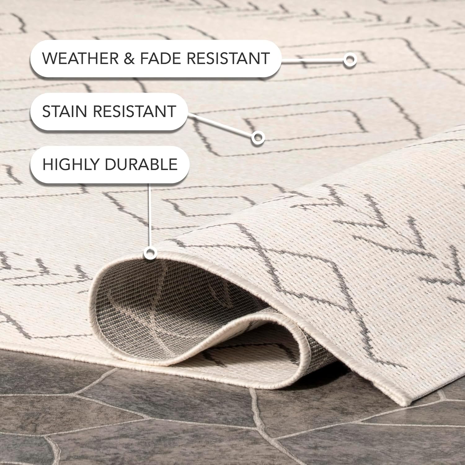 Этот ковер создан с устойчивостью к повседневному износу, подходит для детей и домашних животных, идеален для помещений с высокой проходимостью: гостиной, столовой, кухни и прихожих