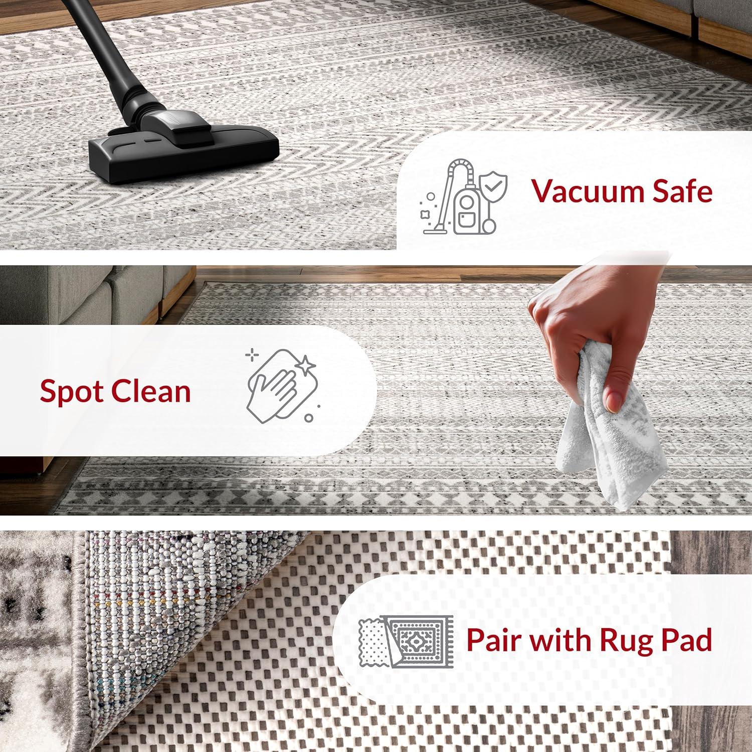 100% полипропилен, сделано в Турции Этот ковер, устойчивый к ежедневному износу, подходит для детей и домашних животных и идеально подходит для помещений с высокой проходимостью в вашем доме, таких как гостиная, столовая, кухня и коридоры. Гладкая и функциональная высота ворса позволяет удобно размещать его в прихожих, под мебелью и не загромождать дверные проемы. Мы рекомендуем использовать его вместе с нескользящей подложкой nuLOOM. Легко чистить и ухаживать, рекомендуем регулярно пылесосить и обрабатывать небольшие пятна средством для чистки ковров.