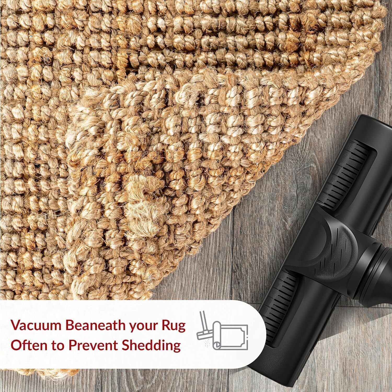 100% джут, сделано в Индии Наши джутовые ковры, сочетающие в себе стиль и долговечность, привносят в дом непринужденную изысканность и прекрасно подходят для вашей спальни, гостиной, столовой, кухни или прихожей. Элегантный и функциональный, толщиной 1/2 дюйма, который удобно размещать в прихожих, под мебелью и который не будет загораживать дверные проемы. Чистите джутовый ковер пылесосом 1–2 раза в неделю на минимальной мощности или с помощью ручной насадки, а также производите точечную чистку по мере необходимости с использованием мягкого моющего средства. Мы рекомендуем использовать подложку под ковер для дополнительной амортизации и предотвращения скольжения по полу. Подложка под ковер служит защитным слоем для пола и ковра от износа, продлевая срок службы ковра.