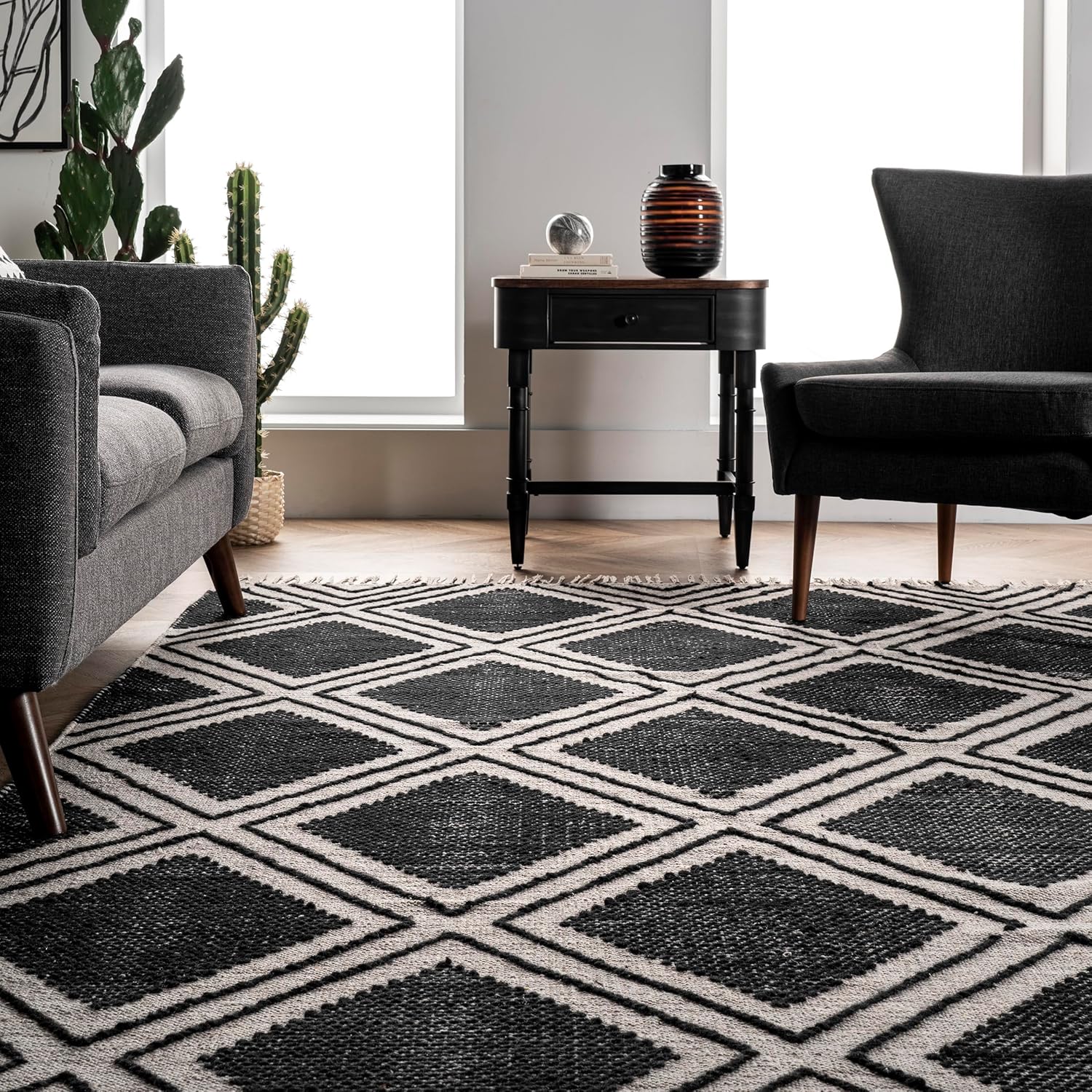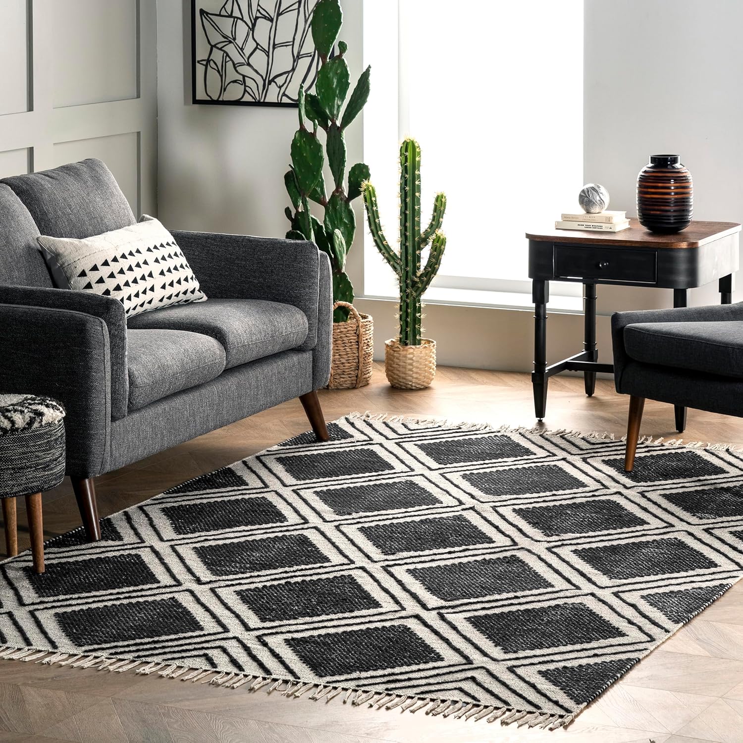 Ковер nuLOOM, 275 x 366 см, Ailey Cotton Diamond Trellis Tassel, Black