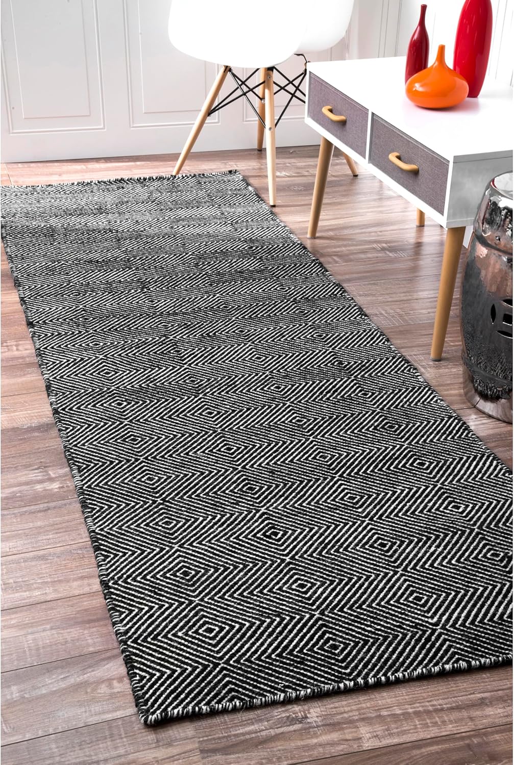 nuLOOM, 77 x 305 см, Ago Geometric Wool Runner Rug, Black