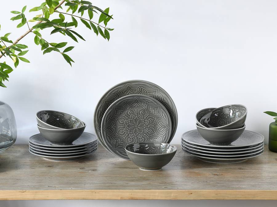 Набор столовых приборов Creatable Orient Mandala 18-teilig, каменно-серый
