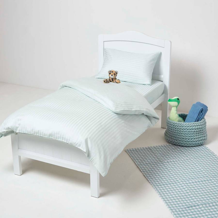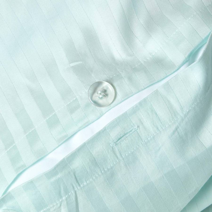 Высококачественное постельное белье с атласными полосками для детейНаше постельное белье с элегантными атласными полосками цвета морской волны соткано из