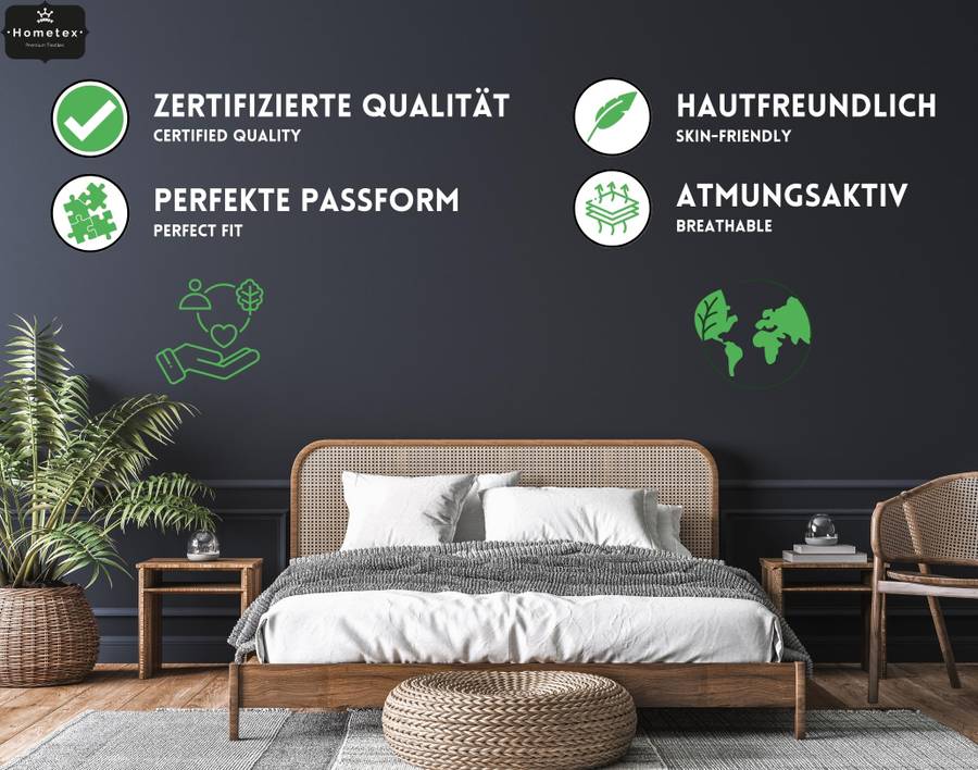 Нужны другие размеры? Без проблем! Откройте для себя наш широкий ассортимент от Hometex Premium Textiles. Ассортимент нашей продукции включает в себя простыни на резинке для детских кроватей, водяных кроватей и кроватей с пружинным блоком, а также наматрасники.