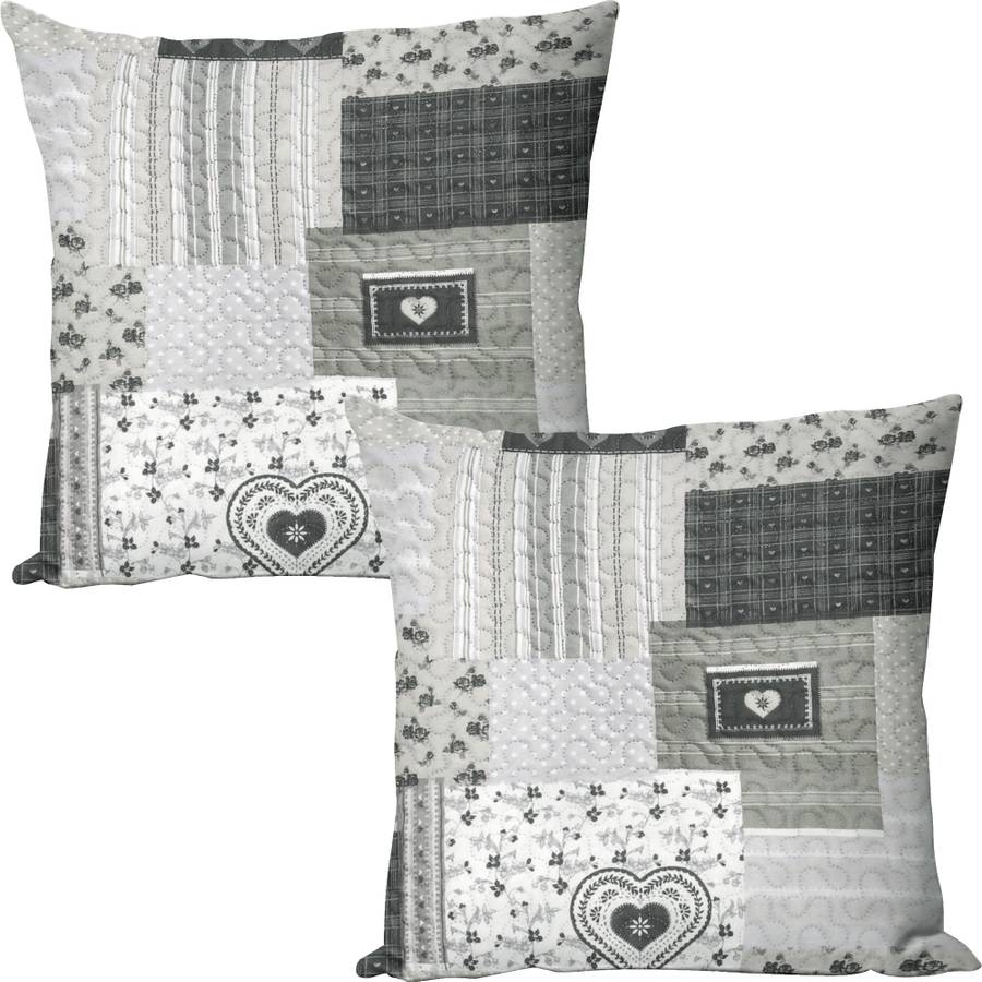 Чехол для подушки Erwin Müller в упаковке из двух штук. Этот стильный аксессуар для дома в стиле пэчворк идеально дополняет современный стеганый узор. Он дополнит любой интерьер и мгновенно придаст вашей комнате новый шарм. Двусторонний, обратная сторона однотонного серого цвета. Внутри тонкий наполнитель из полиэстера.