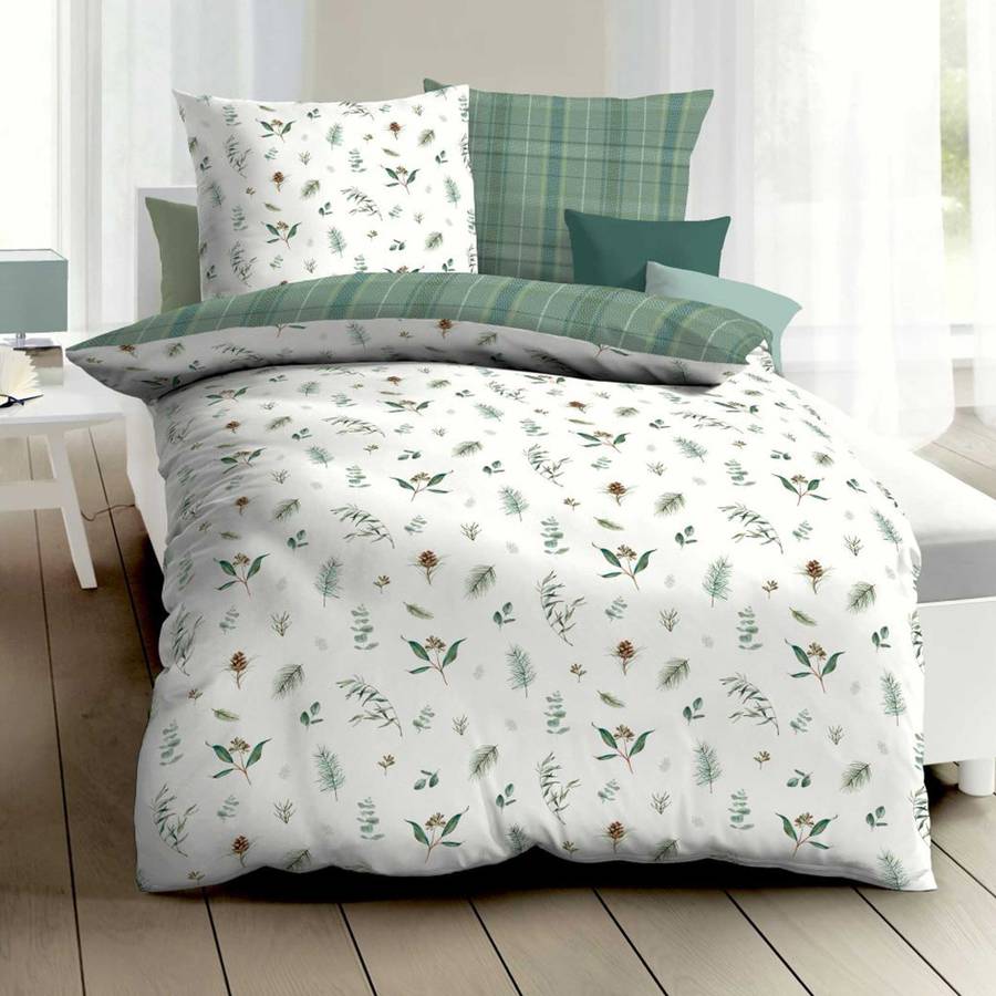 Двустороннее фланелевое постельное белье Kaeppel "Зимняя зелень". Разнообразные ветки привносят в ваш сон ощущение природы. Классическая клетчатая изнаночная сторона создает уютный контраст. Мягкая ткань из чистого хлопка поражает своим высоким качеством: она плотно сплетена и аккуратно расчесана. Благодаря этому она особенно мягкая, пушистая и приятная на ощупь. Уютное покрывало, которое согреет вас уютом в прохладные ночи. Легко гладится, дышащее, регулирует температуру и влажность. Молния, экономящая труд, значительно облегчает смену постельного белья.