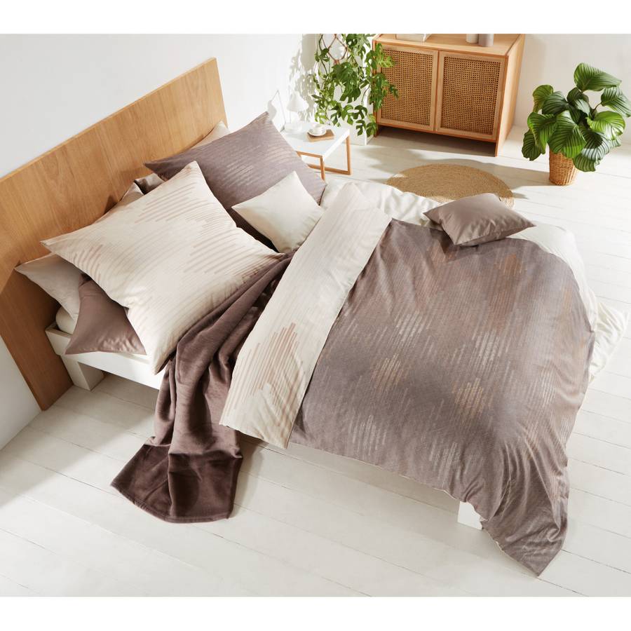 Двустороннее постельное белье Kaeppel Mako из сатина Икат. Геометрический узор икат в современном этническом стиле особенно ярко раскрывается благодаря изысканному двустороннему эффекту. Насладитесь незабываемым сном в этом плотном, шелковисто-мягком, элегантно мерцающем материале. Он не только терморегулирует и приятен на ощупь, но и особенно приятен для кожи и дышащий. Практичная молния значительно облегчает надевание.