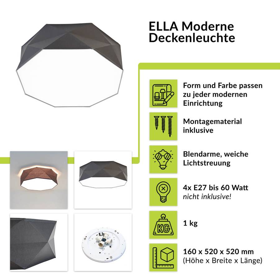 Плоский потолочный светильник в современном геометрическом дизайне - Форма и цвет этого светильника подойдут к любому современному интерьеру - Абажур обеспечивает мягкое рассеивание света без бликов: Идеально подходит для гостиных и спален - Абажур с текстурированной поверхностью - Абажур этого потолочного светильника плотно прилегает к потолку, поэтому основание не видно - Light Experiences 39734