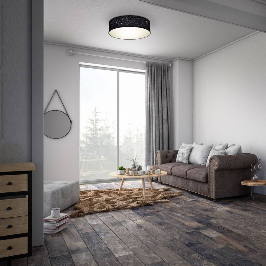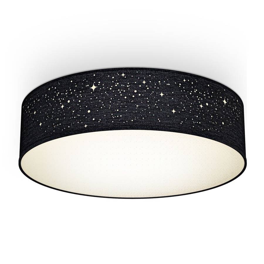 BKLicht | Тканевый потолочный светильник | 38 см | Черный | 2 лампочки E27 | Текстильное звездное небо | Круглый | Лампа для спальни | Текстильный абажур | Без лампочки- Этот круглый тканевый потолочный светильник с 2 лампочками черного цвета проецирует эффект звездного неба в ваши комнаты, такие как гостиная, спальня, столовая, офис, кабинет, коридор, прихожая или детская, благодаря перфорированному тканевому абажуру. Светильник не имеет проекционного эффекта!