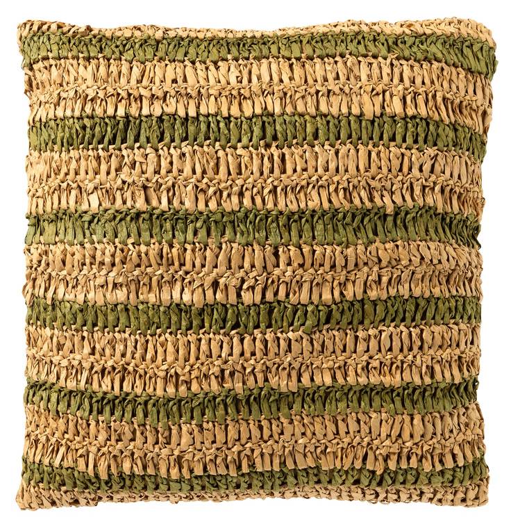 Полоски на чехле подушки изготовлены из рафии, что придает ему уникальный и стильный вид. Сочетание зеленого и коричневого цветов придает чехлу элегантный и вневременной дизайн. Независимо от того, оформлен ли ваш интерьер в современном, индустриальном или классическом стиле, этот чехол идеально впишется в любой стиль. Кроме того, за подушкой легко ухаживать: ее можно чистить пылесосом или влажной тряпкой. Благодаря высокому качеству и красивому дизайну, этот полосатый зеленый и коричневый чехол для подушки просто необходим для тех, кто хочет вывести свой интерьер на новый уровень.