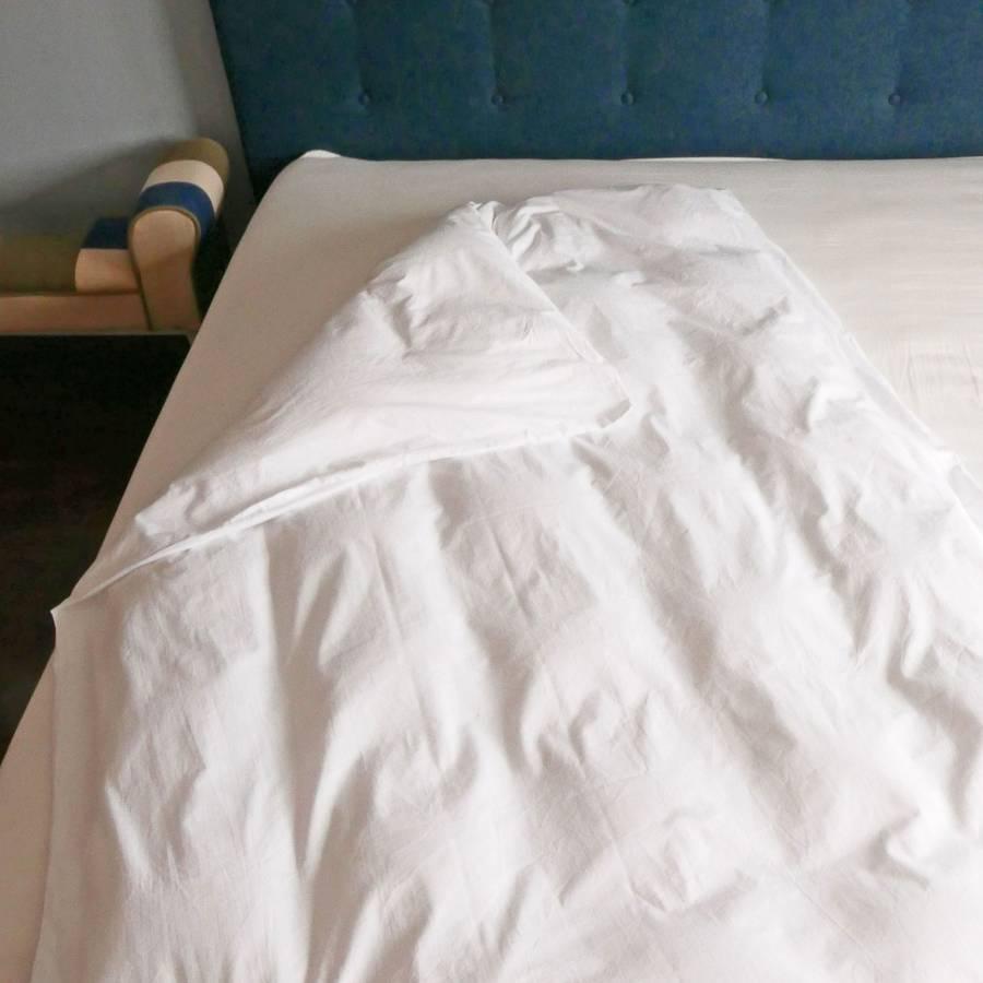 Подарите своей спальне роскошь, которой вы заслуживаете! Этот пододеяльник станет вашим новым фаворитом для чудесно расслабляющих ночей. Белый цвет не только символизирует чистоту, но и придает вашей спальне вневременную элегантность. Изготовленный из 100% хлопка плотностью 125 г/м², пододеяльник обеспечивает оптимальную циркуляцию воздуха, что способствует приятному сну. Наслаждайтесь постельным бельем, которое не только выглядит шикарно, но и улучшает качество вашего сна. Вы можете выбрать один из двух размеров.