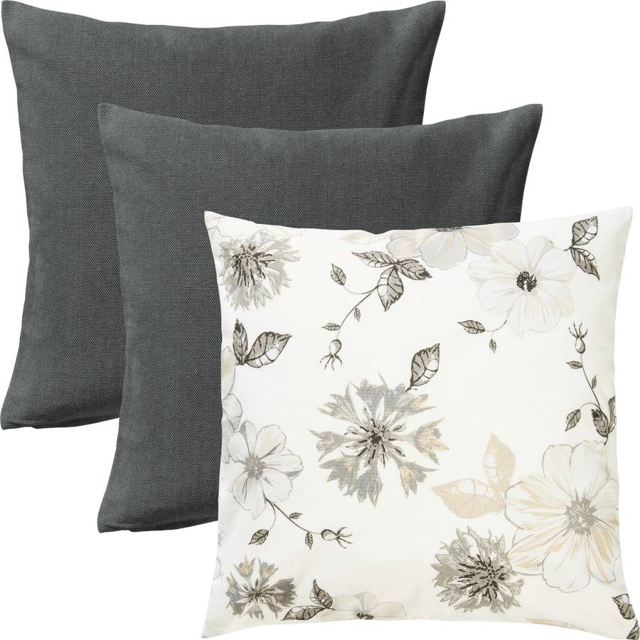 Чехлы для подушек Erwin Müller в упаковке из трех штук. Добавьте приятный контраст к своему дивану с помощью этих аксессуаров для дома. Вы получите два однотонных чехла и один с красивым цветочным узором и защитой от пятен. Прочная, долговечная ткань.