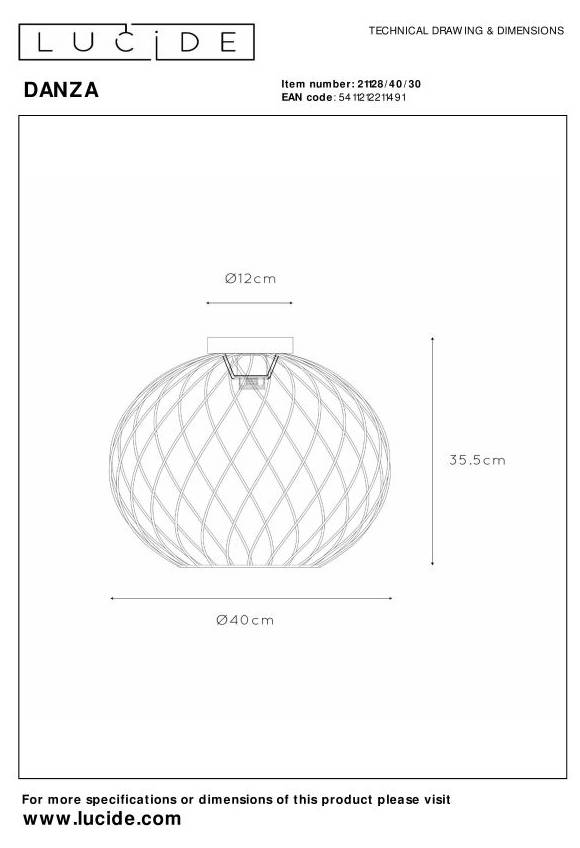 Украсьте свой дом этим игривым потолочным светильником и оживите интерьер. Сферический потолочный светильник окружен источником света, окруженным тонкими витыми металлическими проводами. Благодаря своей открытой конструкции, Danza идеально подходит для использования с элегантной лампой накаливания. Внешний диммер позволяет регулировать интенсивность света по своему вкусу. Danza будет чувствовать себя как дома в любой комнате: от уютной гостиной до атмосферной кухни или скромной спальни. Этот потолочный светильник имеет диаметр 40 сантиметров и высоту 35,5 сантиметров.