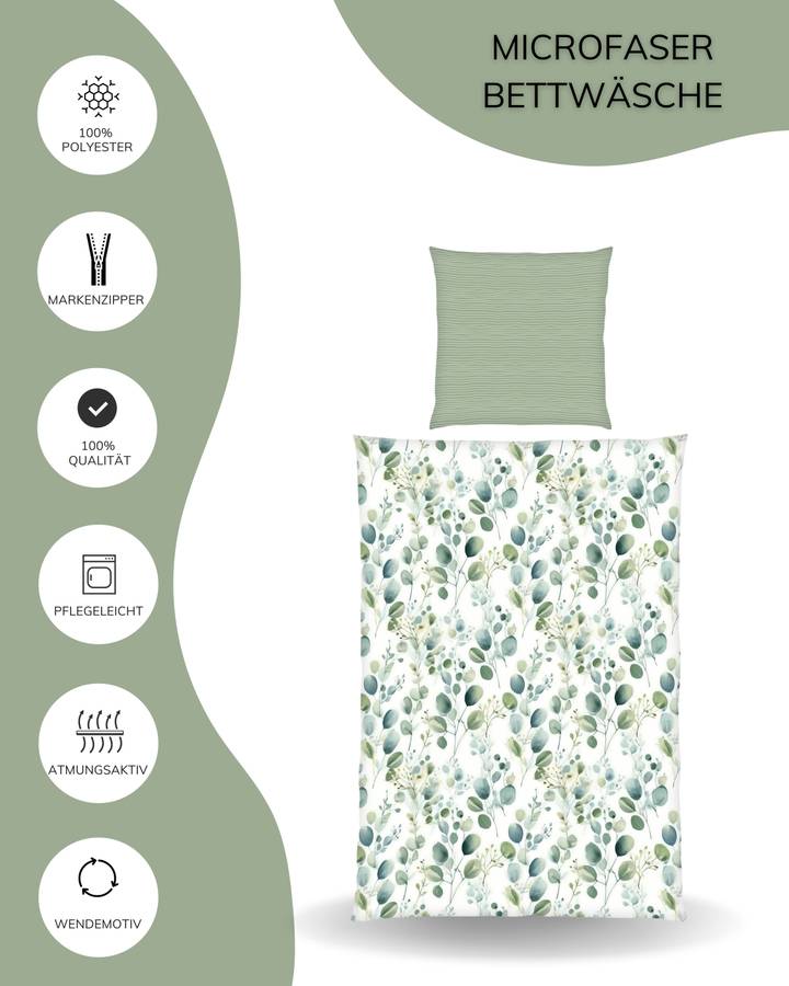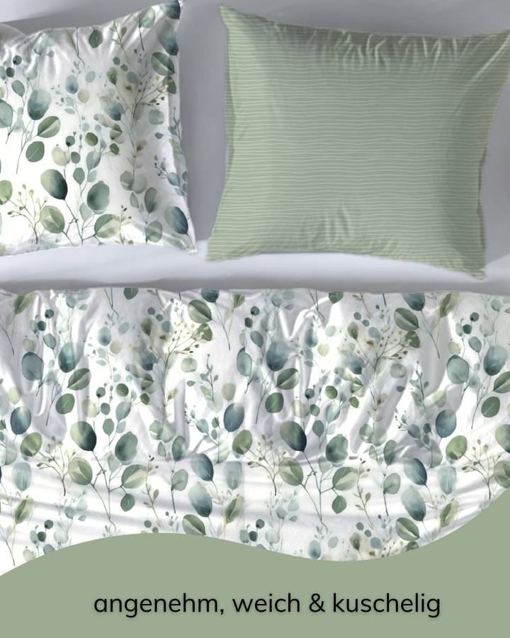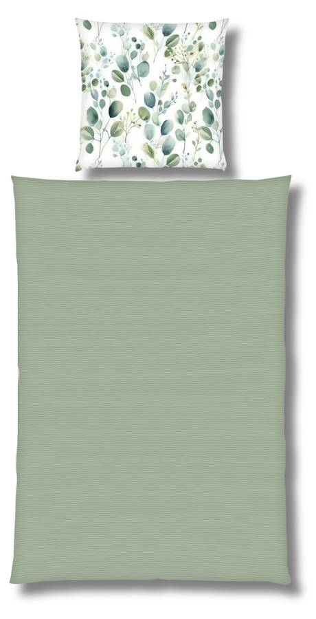 Впустите в свой дом свежесть и умиротворение природы с этим высококачественным постельным бельем с современным дизайном с эвкалиптом. Мягкие тропические зеленые листья в акварельном стиле создадут в вашей спальне элегантную, расслабляющую атмосферу. Зеленая изнаночная сторона с едва заметными полосками создаст гармоничный, вдохновленный природой образ. Комплект изготовлен из дышащей, мягкой микрофибры, обеспечивающей комфортный сон. Это постельное белье идеально подойдет тем, кто любит натуральные дизайны, нежные цвета и стильную простоту. Создайте ощущение ботанического уединения прямо в своей спальне!