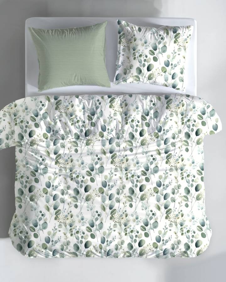 Впустите в свой дом свежесть и умиротворение природы с этим высококачественным постельным бельем с современным дизайном с эвкалиптом. Мягкие тропические зеленые листья в акварельном стиле создадут в вашей спальне элегантную, расслабляющую атмосферу. Зеленая изнаночная сторона с едва заметными полосками создаст гармоничный, вдохновленный природой образ. Комплект изготовлен из дышащей, мягкой микрофибры, обеспечивающей комфортный сон. Это постельное белье идеально подойдет тем, кто любит натуральные дизайны, нежные цвета и стильную простоту. Создайте ощущение ботанического уединения прямо в своей спальне!
