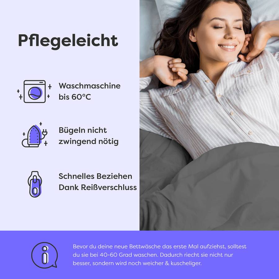 • КОМФОРТНЫЙ СОН:Благодаря двойной начесываемой поверхности и суперпряже пушистое постельное белье 200x200 серо-антрацитового цвета обеспечивает приятную температуру летом и зимой. Это летнее постельное белье согревает в холод и охлаждает в теплое время года. Идеально подходит в качестве постельного белья и летних постельных принадлежностей на весь год. Этот комплект постельного белья также идеально подходит в качестве охлаждающего постельного белья для жарких ночей, обеспечивая максимальный комфорт во время сна в любое время года.