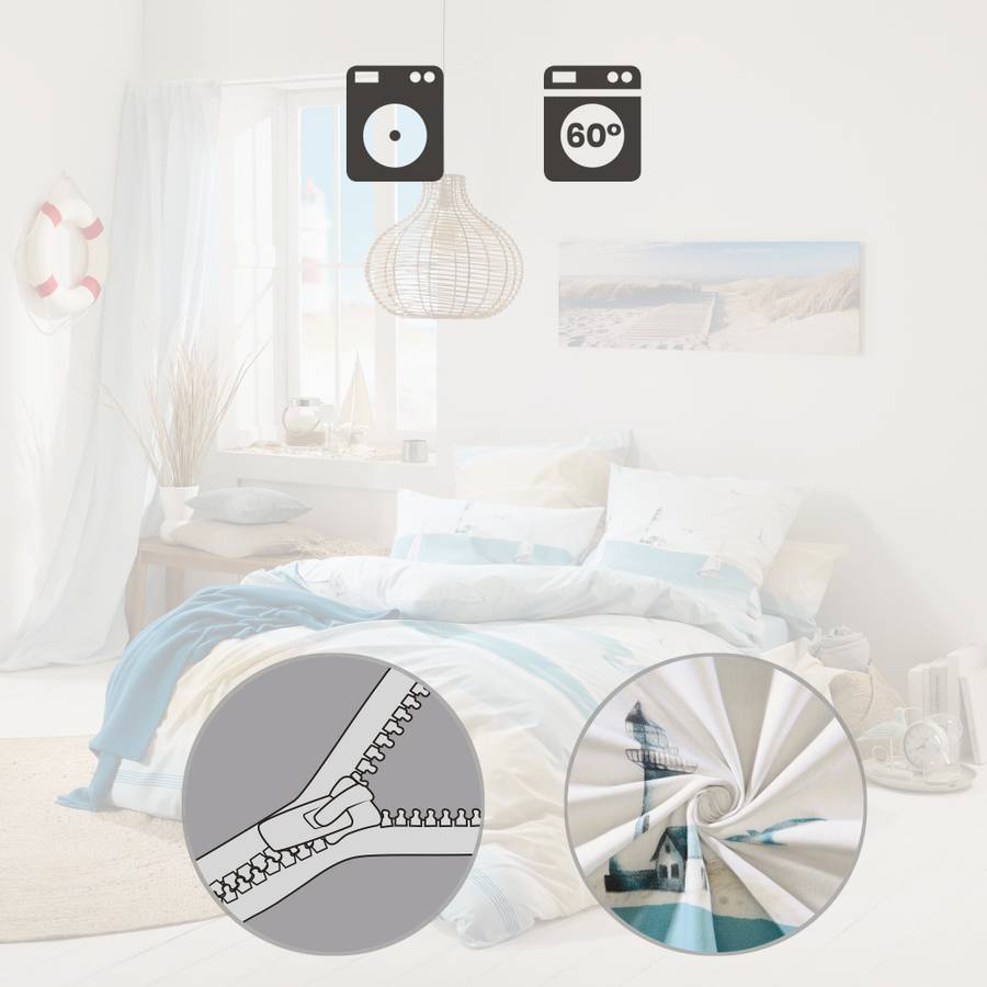 Постельное белье REDBEST Renforcé. Морской мотив в натуральных тонах, словно нарисованный на картине, создает атмосферу побережья в вашей спальне. Двусторонняя наволочка добавляет разнообразия. Цвета красиво переливаются на гладкой ткани. Эта терморегулирующая ткань не только приятна для кожи и дышащая, но и отличается высокой прочностью. Быстро надевается благодаря практичной молнии.