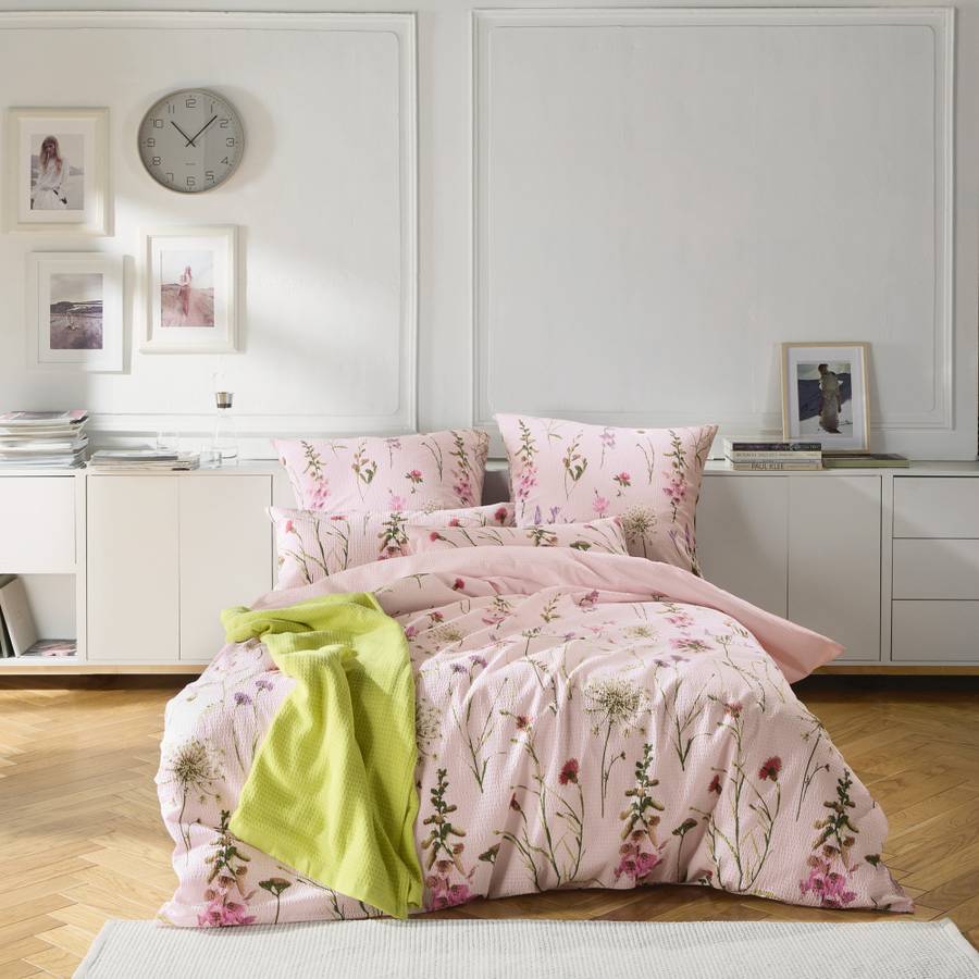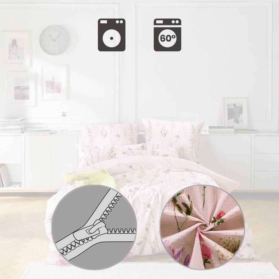 Постельное белье REDBEST из сирсакера. Сказочные луговые цветы создадут очаровательную атмосферу в вашей спальне. Мечты сбываются в этой летней, легкой, ароматной и нежной ткани с характерной креповой текстурой. Вы быстро оцените особые свойства этой легкой в уходе ткани, которая не требует глажки и застегивается на молнию: просто постирайте, высушите и наденьте.