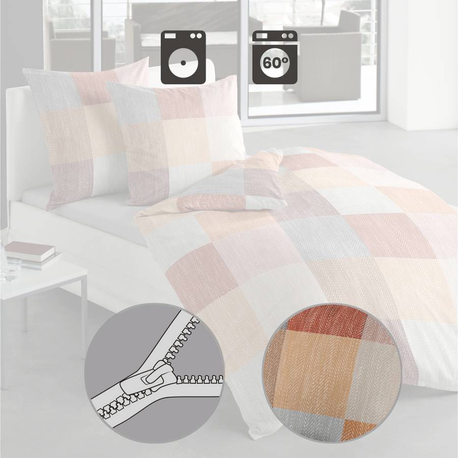 Постельное белье Bierbaum Renforcé. Гармоничные цветные квадраты, оживленные нежным узором елочка, сделают это постельное белье прекрасным украшением вашей спальни. Вам понравится спать на гладкой, мягкой ткани с ровной поверхностью. Она приятна к телу и создает приятную атмосферу для сна. Это постельное белье не только регулирует влажность и дышит, но и приятно на ощупь, долговечно и легко в уходе. Легко и просто надевать благодаря практичной молнии.
