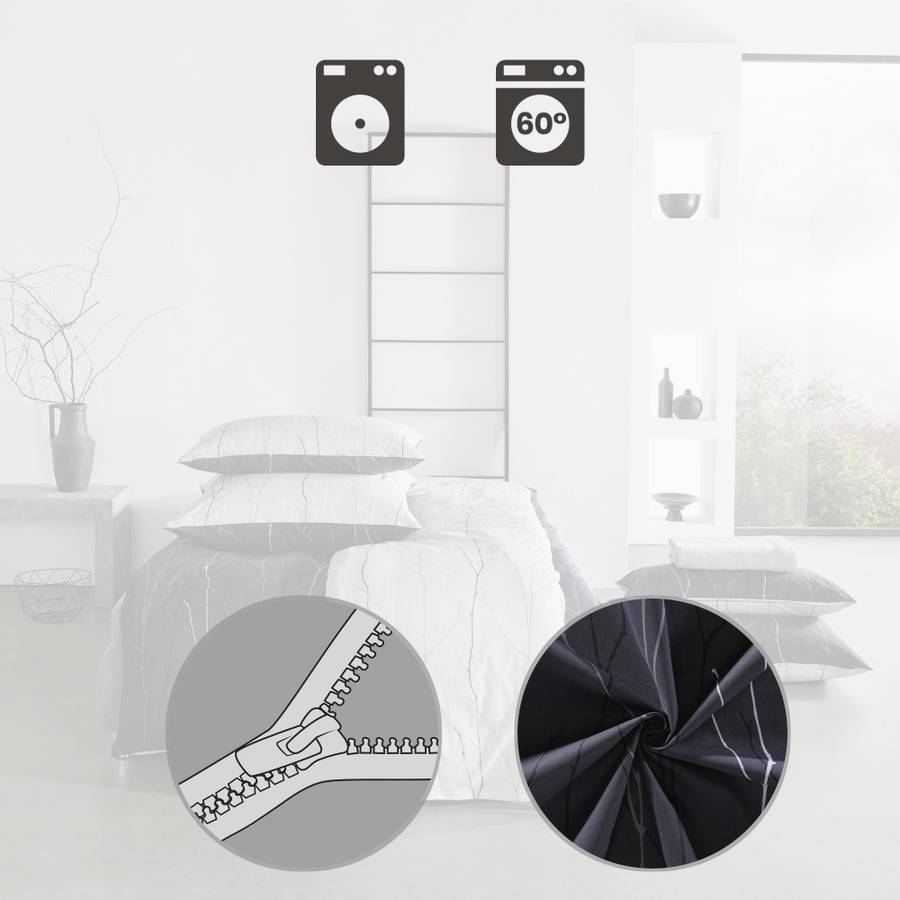 Двустороннее постельное белье REDBEST Renforcé. Изысканный рисунок с виноградной лозой представлен в двух привлекательных расцветках, поэтому вы можете выбирать любимую комбинацию каждую ночь. Вам понравится уютно укутываться в эту гладкую, мягкую ткань. Эта терморегулирующая ткань не только приятна для кожи и дышащая, но и отличается высокой прочностью. Быстро надевается благодаря практичной молнии.