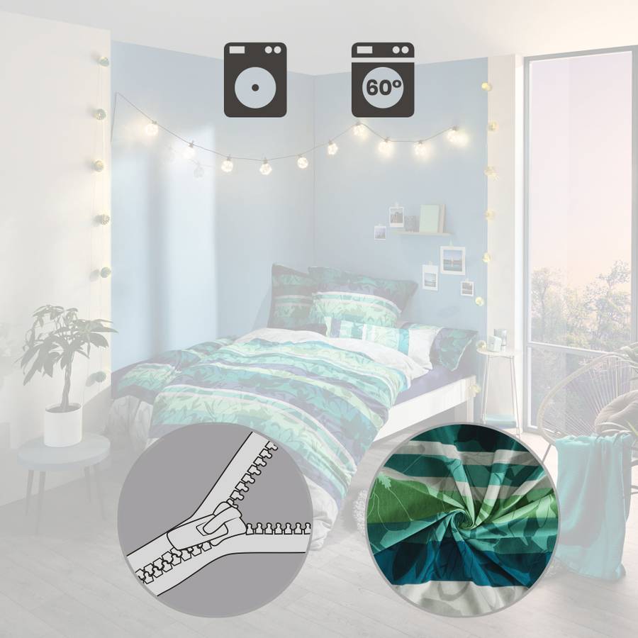Односпальное постельное белье REDBEST из трикотажного полотна. Изящный цветочный узор оживляет фон и служит идеальной основой для современного полосатого дизайна. Вас порадует невероятно мягкое, тонкое и мерцающее качество в любое время года. Ночь за ночью этот терморегулирующий материал балует вас; он особенно нежен к коже и превосходно дышит. Благодаря своей естественной эластичности, это постельное белье легко в уходе, сохраняя идеальную форму. не требует глажки и легко надевается благодаря молнии.