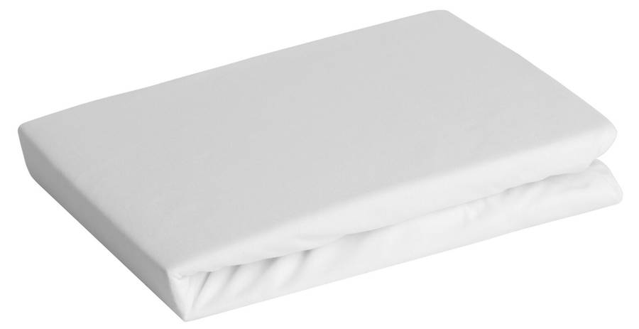 Простыня на резинке из джерси. Мягкая, эластичная, с резинкой обеспечивает идеальную посадку и высокий комфорт. Ширина: 240 см, Длина: 220 см, Цвет: Белый, Плотность: 125 г/м², Ткань: 100% хлопок.