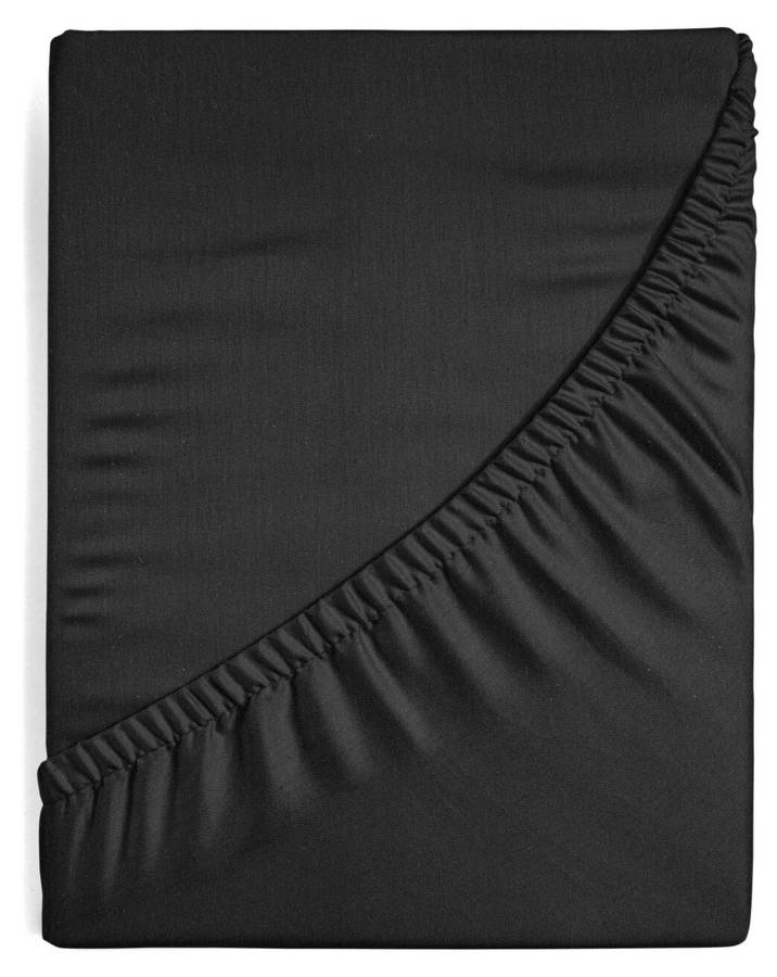 Простыня на резинке из джерси. Мягкая, эластичная, с резинкой обеспечивает идеальную посадку и высокий комфорт. Ширина: 240 см, Длина: 220 см, Цвет: черный, Плотность: 125 г/м², Ткань: 100% хлопок.