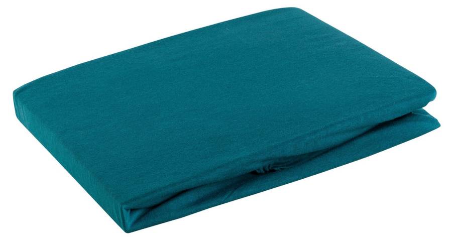 Простыня на резинке из джерси. Мягкая, эластичная, с резинкой обеспечивает идеальную посадку и высокий комфорт. Ширина: 240 см, Длина: 220 см, Цвет: бирюзовый, Плотность: 125 г/м², Ткань: 100% хлопок.