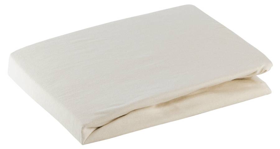 Простыня на резинке из джерси. Мягкая, эластичная, с резинкой обеспечивает идеальную посадку и высокий комфорт. Ширина: 220 см, Длина: 200 см, Цвет: бежевый, Плотность: 125 г/м², Ткань: 100% хлопок.