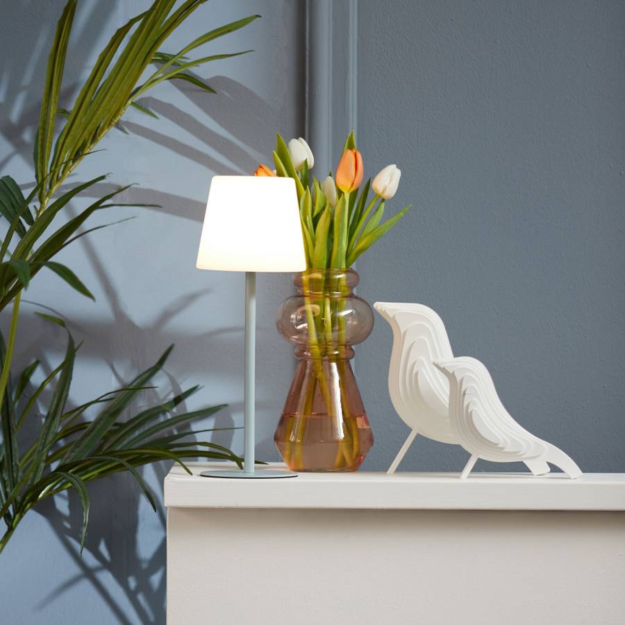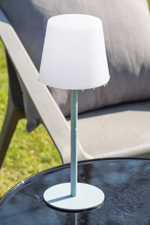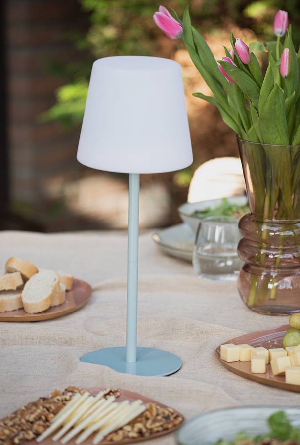 Настольная лампа Outdoors отличается минималистичным дизайном! Она гармонично сочетает в себе классическое очарование и современные нотки. Эта стильная лампа размером 15 x 15 x 40 см с белым абажуром и простым синим металлическим каркасом притягивает взгляд. Будь то прикроватная тумбочка, письменный стол или комод, эта классная настольная лампа найдет идеальное место в любом уголке вашего дома и обеспечит нотку спокойствия.