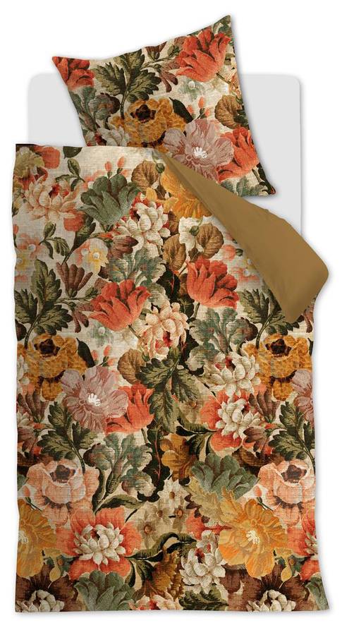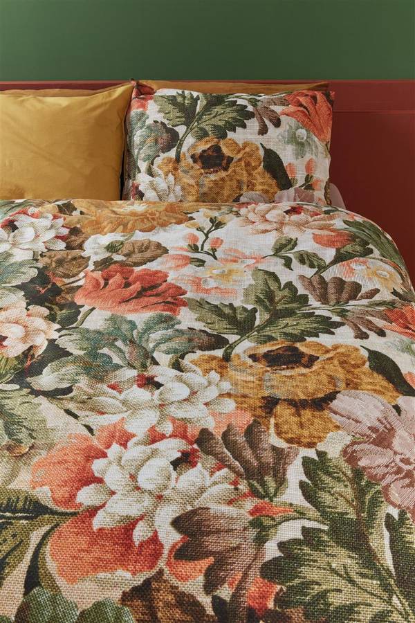 С постельным бельем Memory от At Home by BeddingHouse вы создадите неповторимый интерьер в своей спальне. Пододеяльник украшен великолепным винтажным цветочным принтом в различных цветах, включая охру, зеленый, терракотовый, желтый, оранжевый, телесный и фиолетовый. Цифровая печать на лицевой стороне сочетается с однотонной изнанкой.