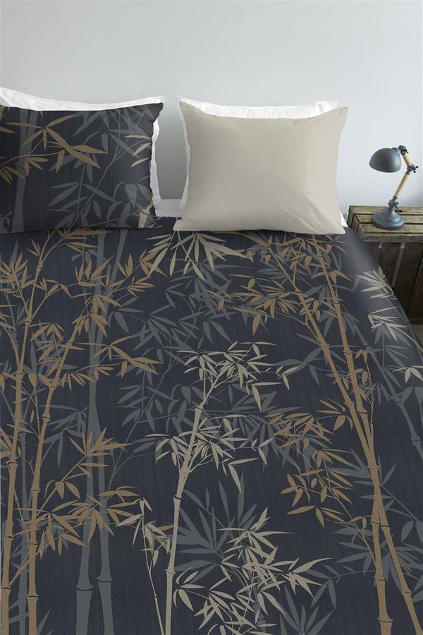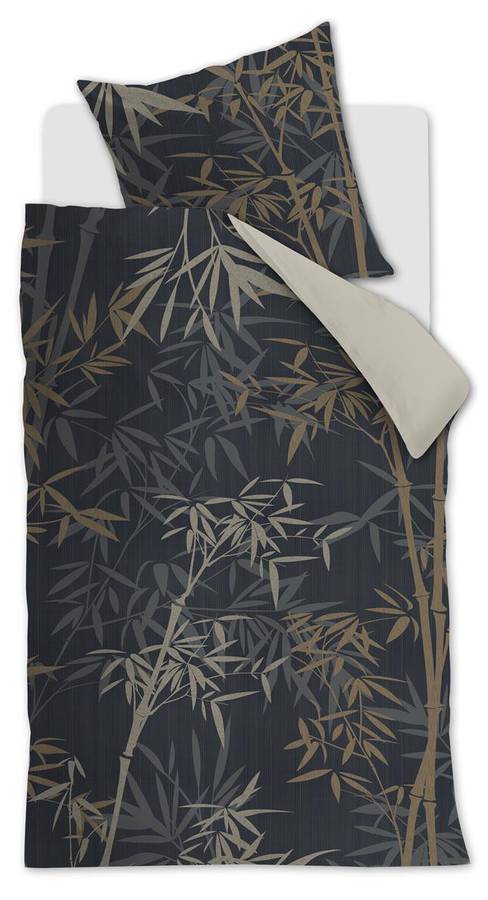 Пододеяльник Kay от Ambiante - это современный пододеяльник в ботаническом стиле. Листья бамбука серого, коричневого, серо-коричневого и песочного цветов изображены на серо-темно-синем фоне. Обратная сторона пододеяльника имеет простой песочный цвет, что придает ему стильный и умиротворяющий вид.