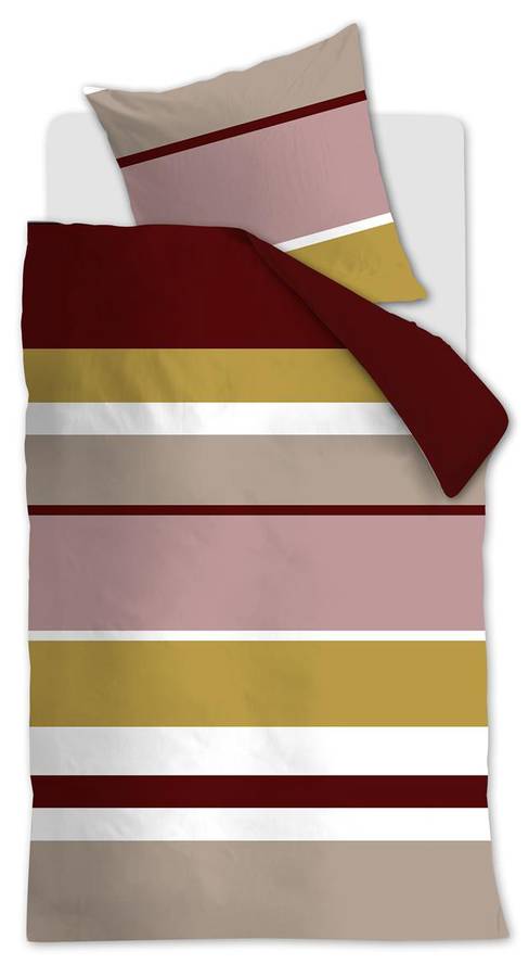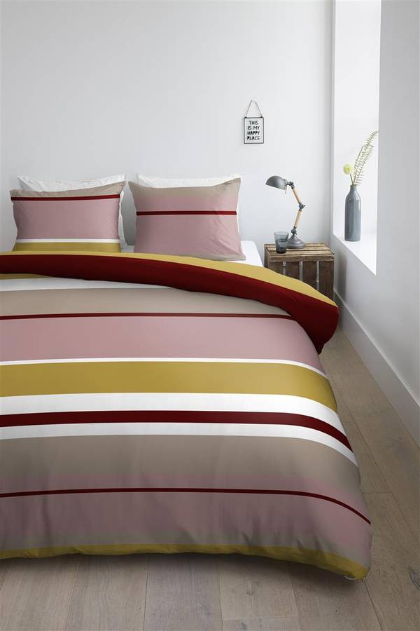 Дизайн постельного белья Andy состоит из полосок разных размеров, красного, охристого и розового цветов. Наволочки украшены рисунком в тех же ярких цветах, что создает современный и игривый образ. Постельное белье особенно хорошо подходит для стильных спален.