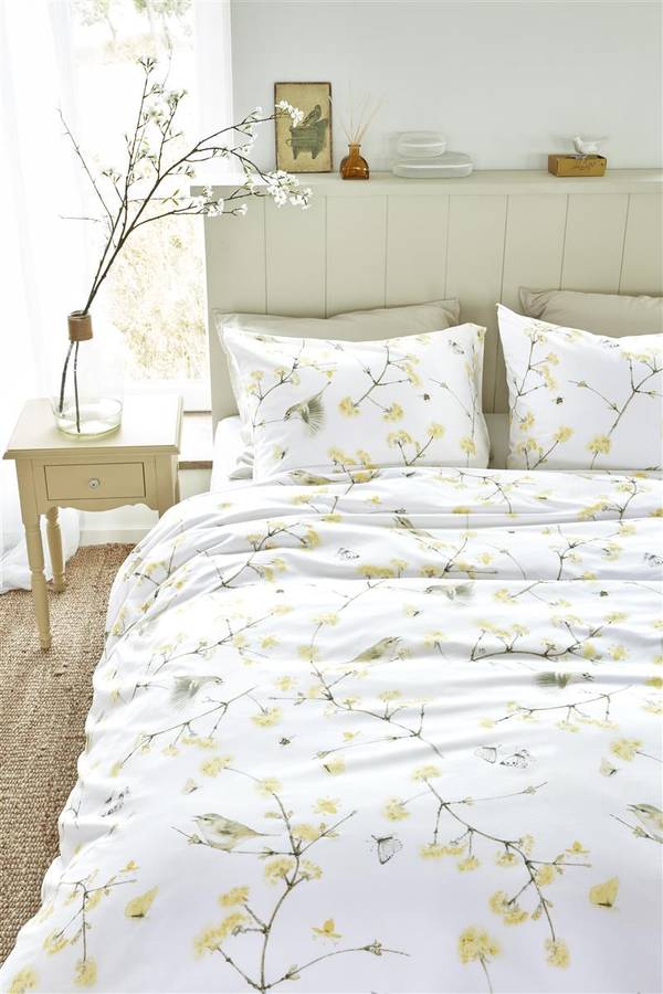 Вы тоже так любите весну? С постельным бельем Chiffchaff от Marjolein Bastin вы принесете ощущение весны в свой дом. На постельном белье изображены поющие пеночки, восседающие на прекрасных желтых цветущих ветках, в окружении жужжащих пчел и порхающих бабочек. Этот принт по всей поверхности придает нежное и романтическое сияние. Узор вдохновлен атмосферными и деревенскими рисунками Marjolein Bastin.