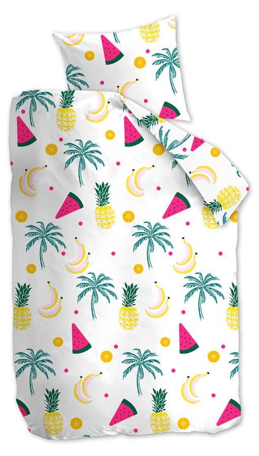 Игривый пододеяльник Kayla сочетает в себе тропические фрукты и солнечные пальмы в свежих, жизнерадостных тонах: желтом, фуксии и зеленом. Он обязательно подарит вам летнее настроение!